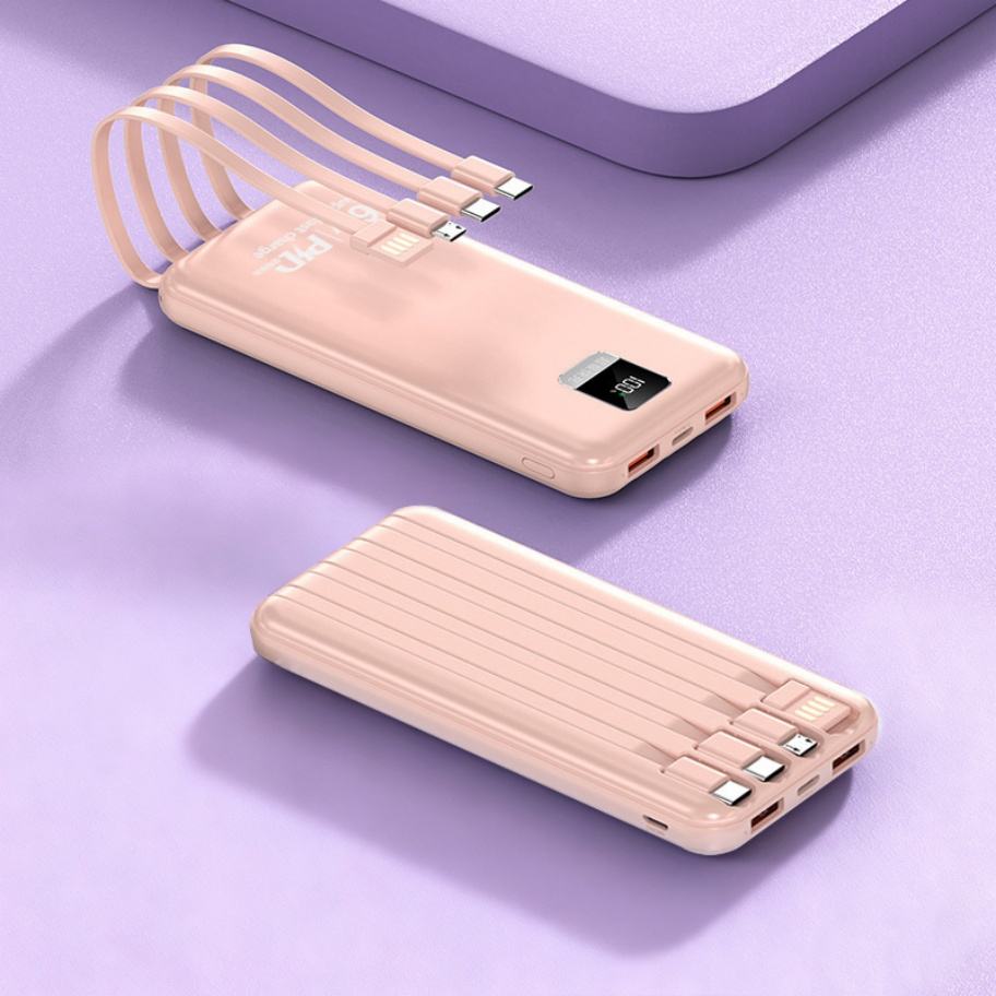 พาวเวอร์แบงค์แบบพกพา 10W ความจุ 10000mAh/20000mAh พร้อมสายชาร์จในตัว หน้าจอ LED แสดงผลแบบดิจิตอล ช่องเสียบ USB คู่