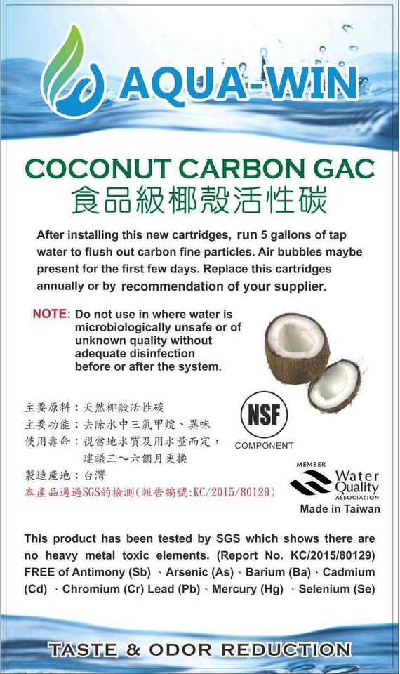 ไส้กรองถ่านกัมมันต์ GAC 10นิ้วผลิตในไต้หวัน