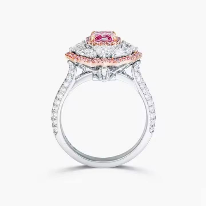 แหวนทองคำขาว10K/14K/18K 18kt สีขาวและสีโรสโกลด์พร้อมแหวนเพชรปลูกในห้องปฏิบัติการสีชมพูสำหรับวันครบรอบ