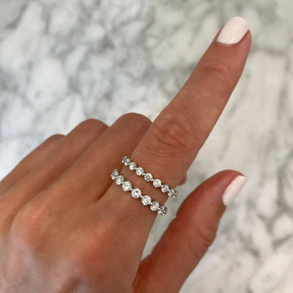 10K สายคาดเพชรสำหรับงานแต่งงานที่ทำจากทองสำหรับห้องปฏิบัติการเครื่องประดับเพชรทรงกลมตัดเพชรแหวนหมั้นแหวนกลม