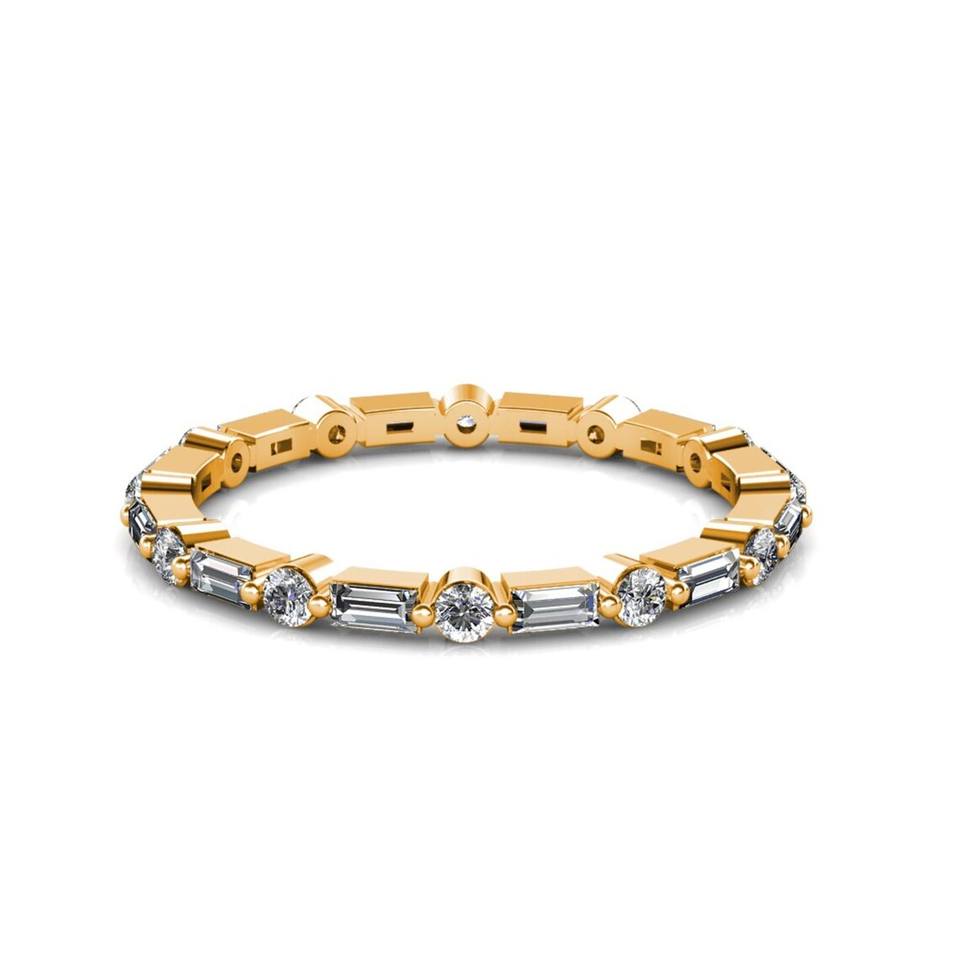 10K สายคาดแต่งงานเพชรเติบโตในห้องปฏิบัติการทองเครื่องประดับเพชรรอบและ Baguette ตัดเพชรแหวนหมั้นแหวนรอบคลาสสิก