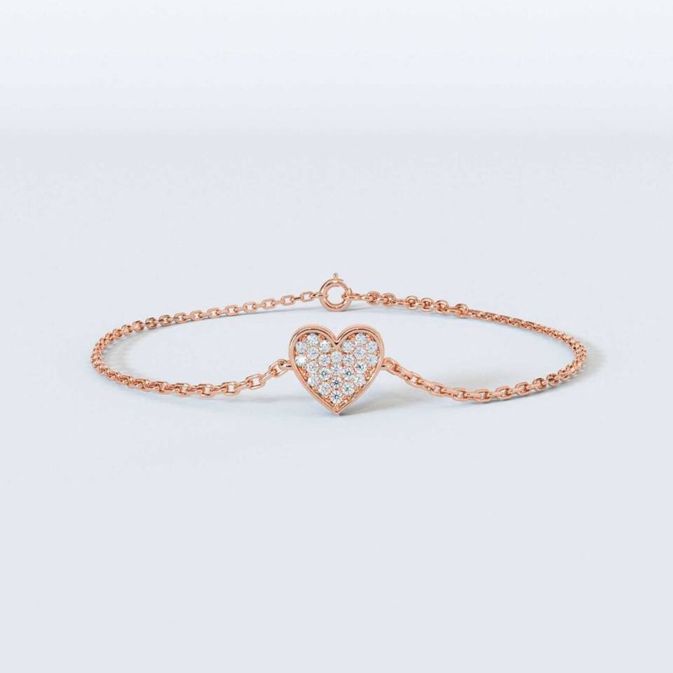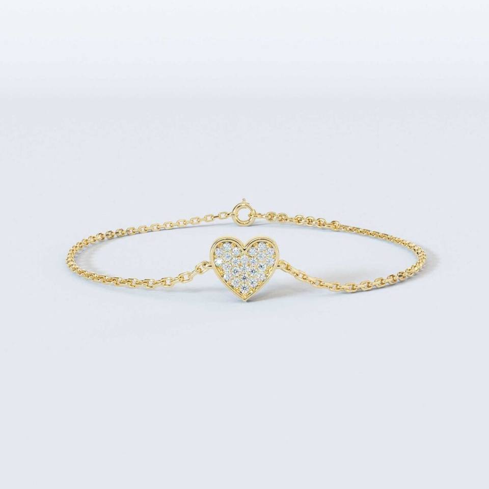 10K สร้อยข้อมือเพชรกลมสีทองล้วนสำหรับปลูกในห้องปฏิบัติการสำหรับการปลูกเพชรเครื่องประดับสร้อยข้อมือเพชรทรงกลมรูปหัวใจสำหรับงานแต่งงาน