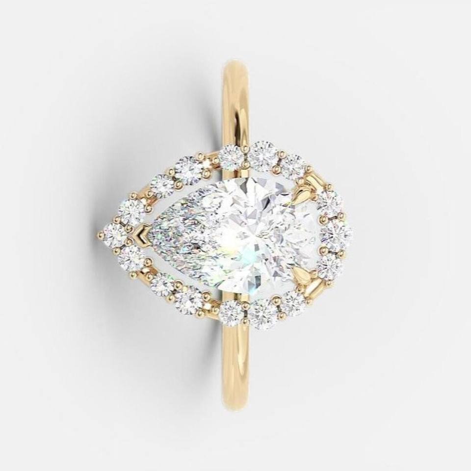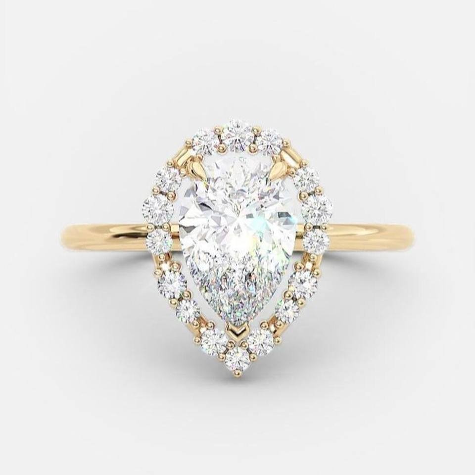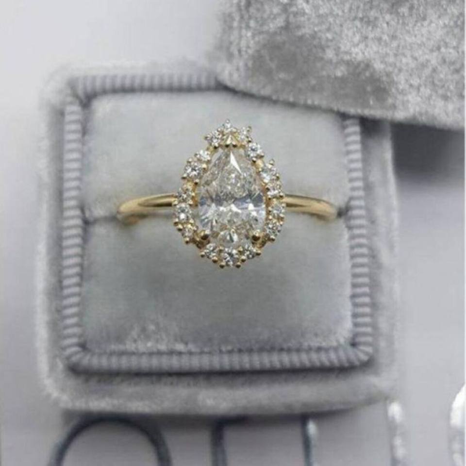 10K แหวนหมั้นเพชรแบบกลมและลูกแพร์สีทองสำหรับผู้ใหญ่เครื่องประดับฮาโลวินเทจสำหรับทำแหวนเพชรระดับพรีเมียม