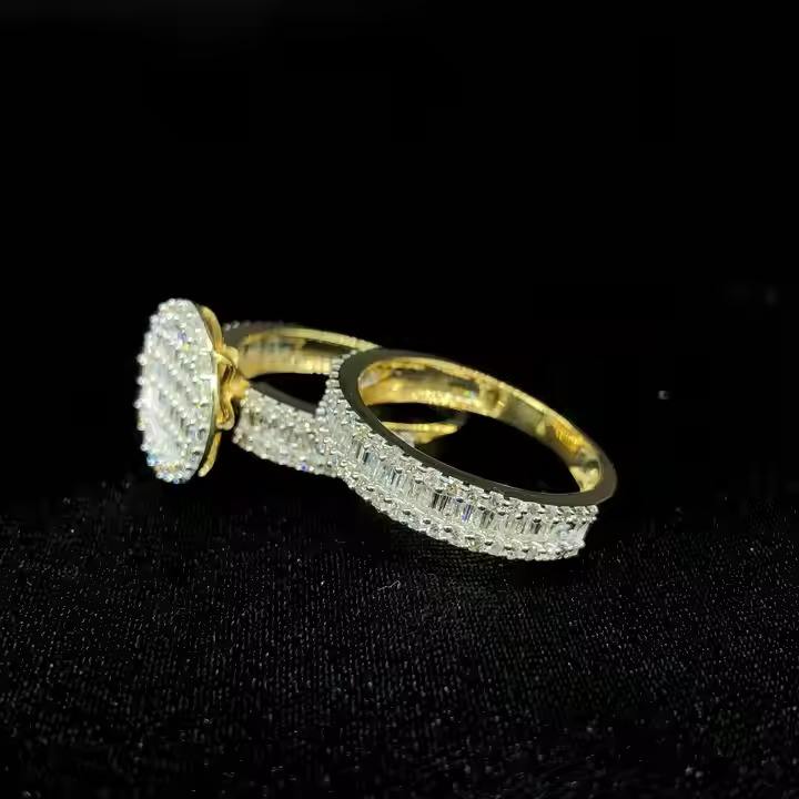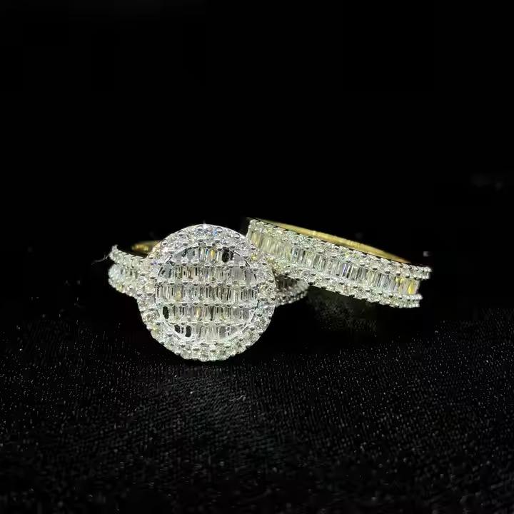 แหวนฮิปฮอปสีเหลืองทอง10K สง่างามพร้อม2.91cts เพชรกลมและ1.18cts บาแกตต์