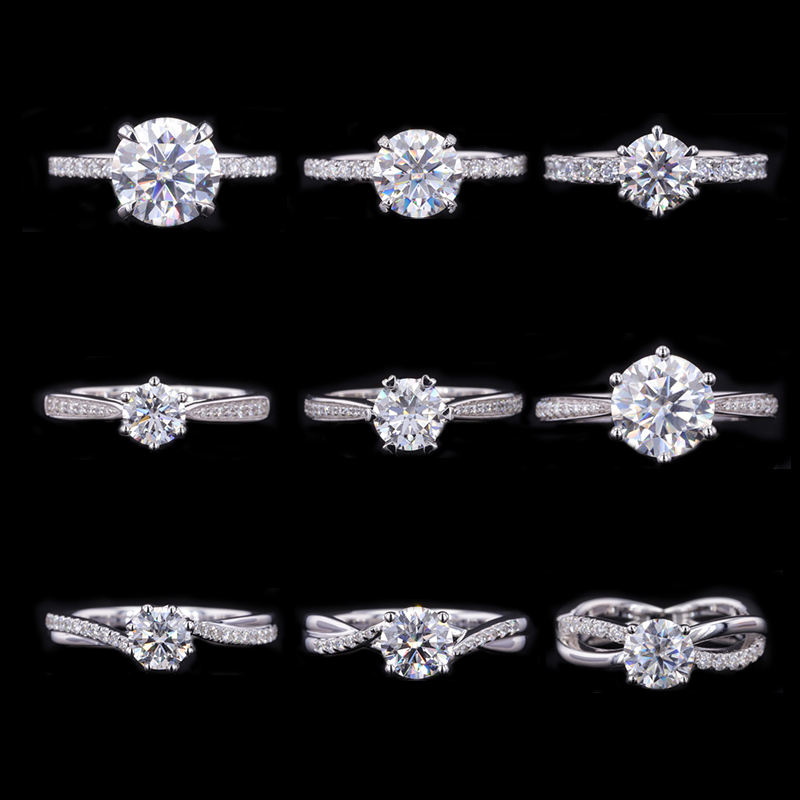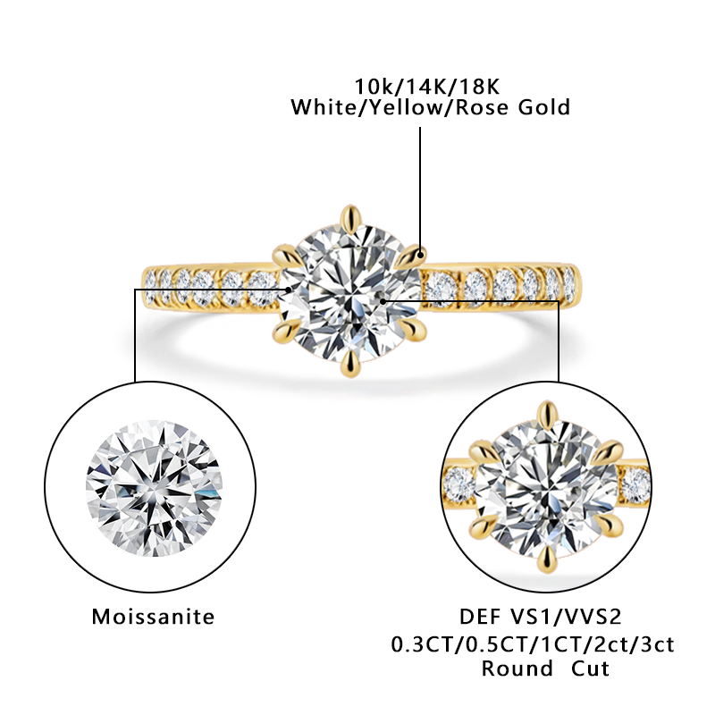 แหวนเพชรมอยซาไนต์สีขาว10K 1CT ประดับเพชรวงแหวนเพชรโมอิสซาไนท์สีทองทรงกลมตัดสดใส