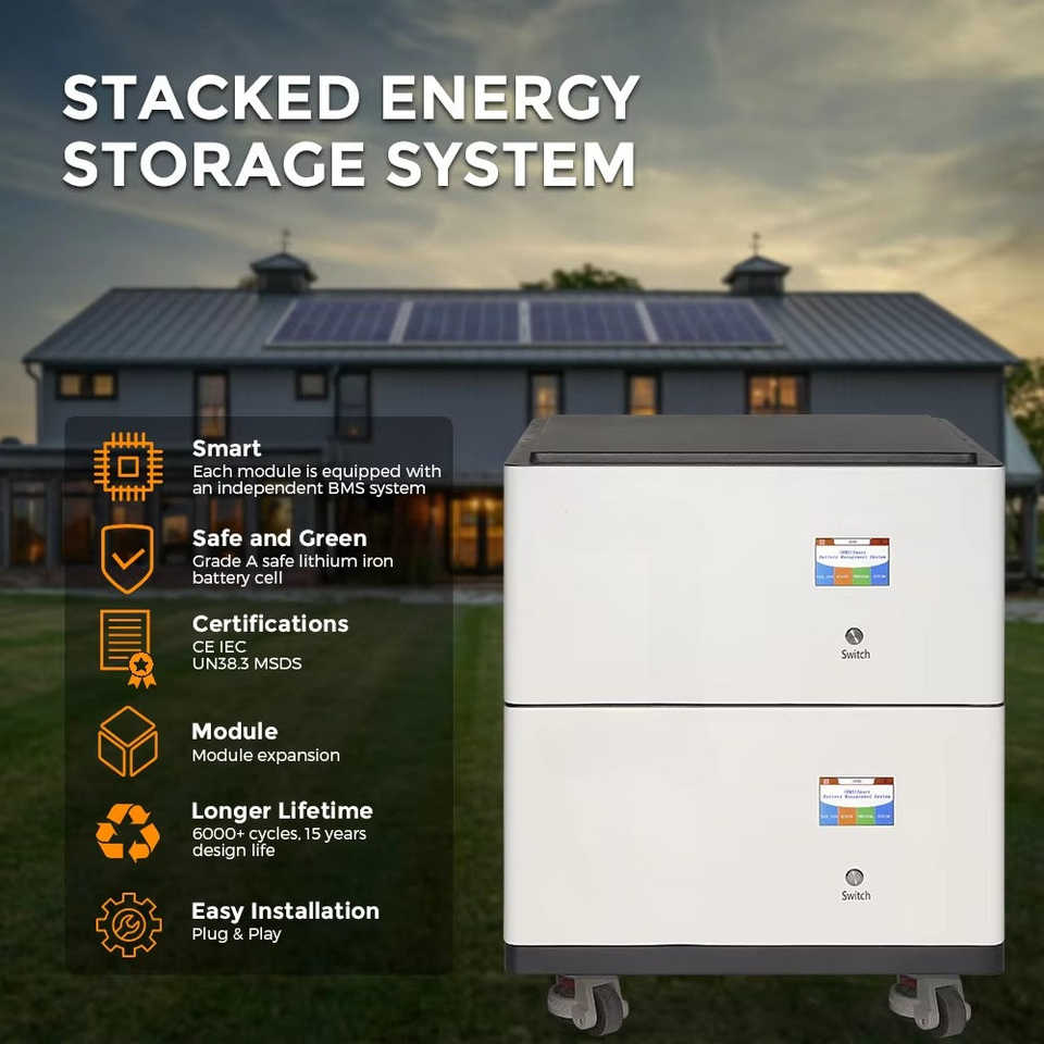 10kWh เก็บแบตเตอรี่ลิเธียมพลังงานแสงอาทิตย์ขนาด51.2V LiFePO4 200Ah จัดเก็บแบตเตอรี่เกรด10-20kW ส่งออก AC