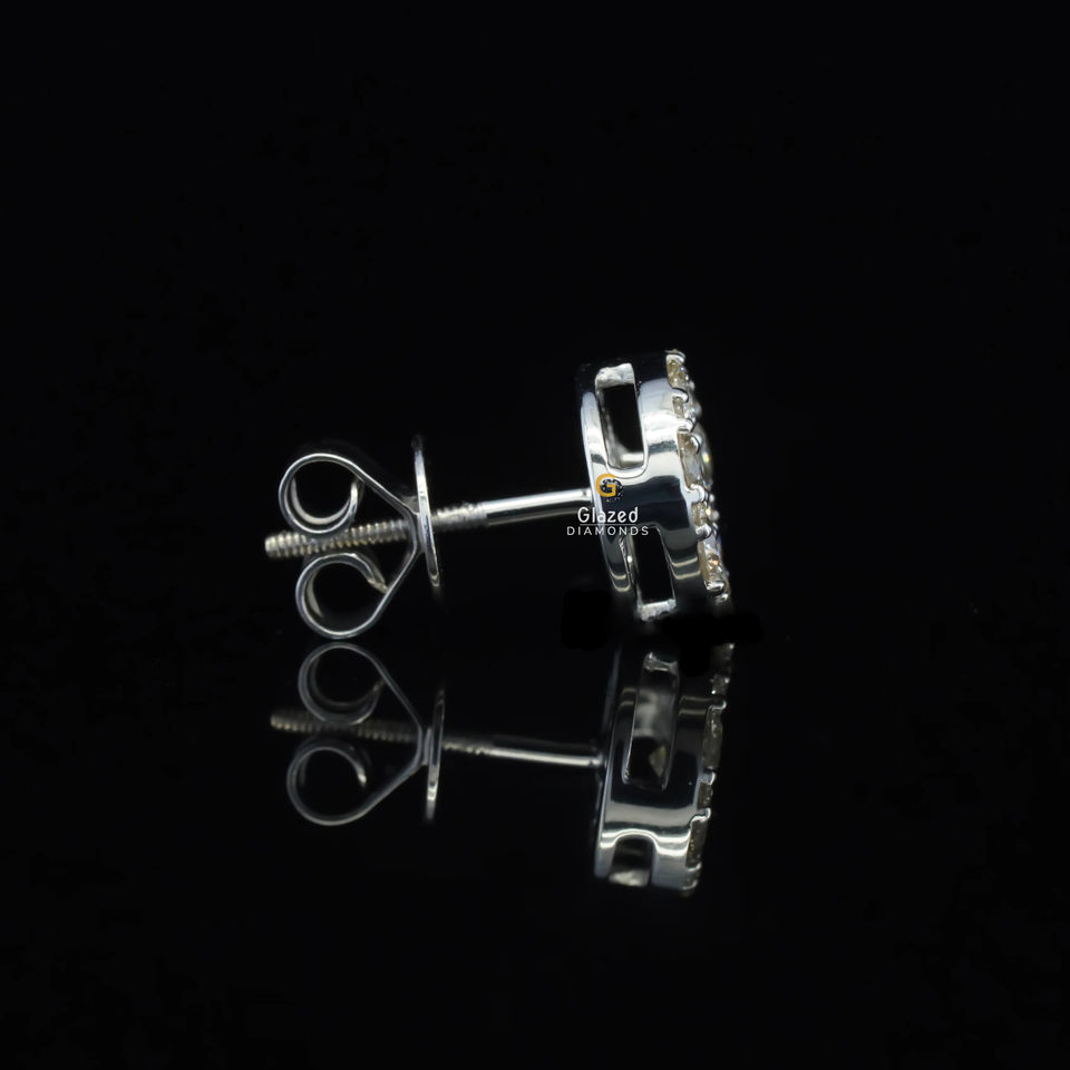 ตุ้มหูสีทองล้วน10kt เพชรโมอิสเจียระไนแบบกลมใสสำหรับผู้หญิง