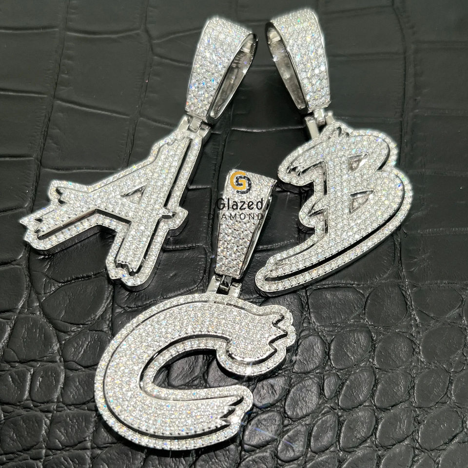 จี้ตัวอักษรฮิปฮอปสีขาวและทองแบบ10kt พร้อมเม็ดเพชรโมอิสซานไนท์เจียระไนแบบวงกลมเพื่อเพิ่มความคมชัดของ VVS