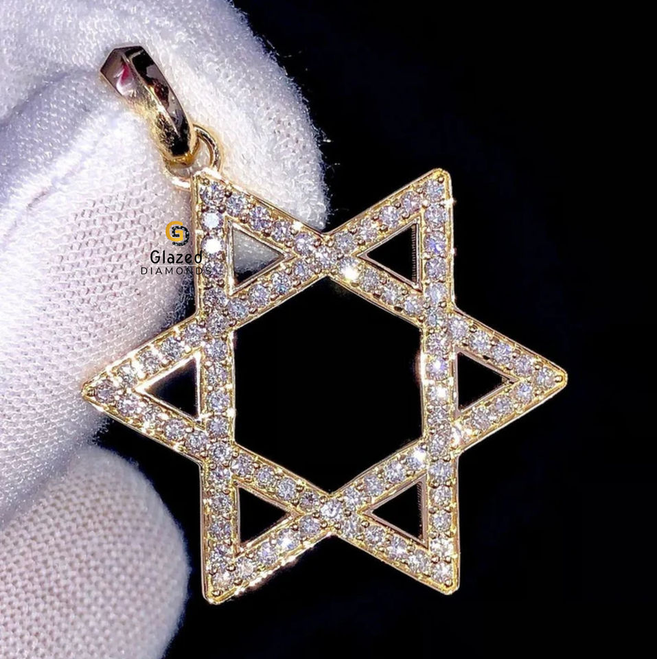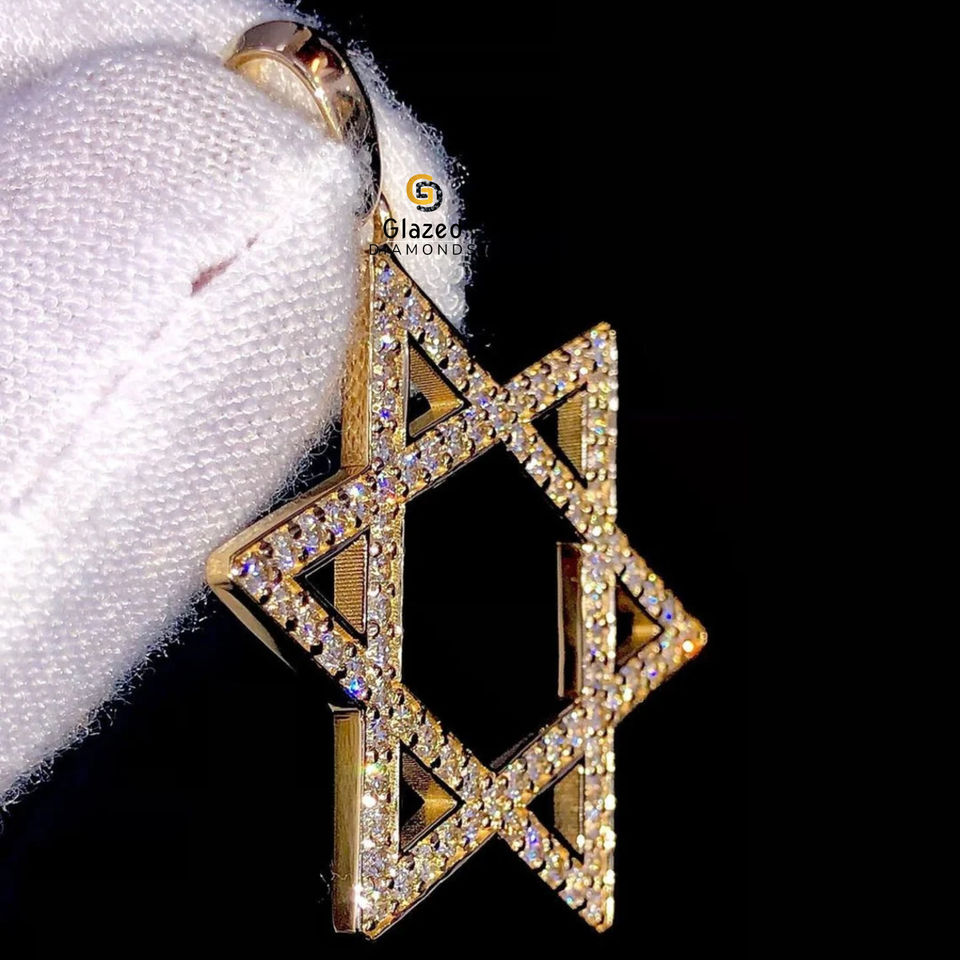 จี้ฮิปฮอปดาวประดับเพชรรูปดาวสีทองสีเหลือง10kt เจิดจ้าประดับเพชรรูปดาวสุดสวย