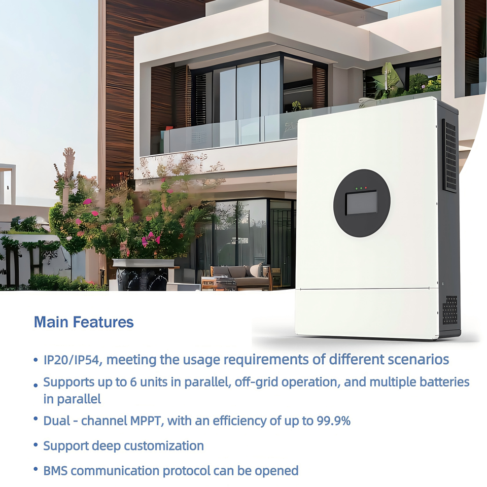 อินเวอร์เตอร์พลังงานแสงอาทิตย์แบบแยกเฟส 10kw 12kw มาตรฐานสหรัฐอเมริกา สำหรับระบบออฟกริด KTECH 120/240Vac สำหรับบ้านพักอาศัย Wattsolar