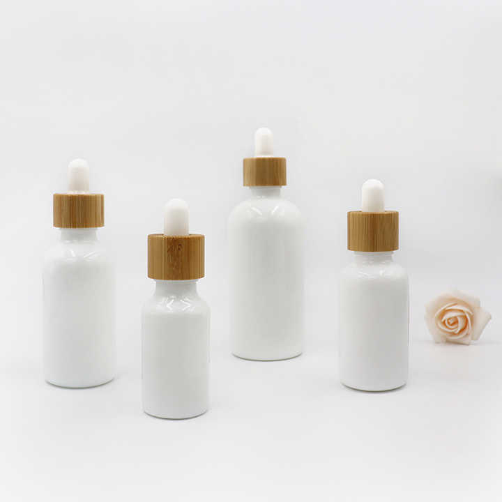 ขวดแก้วฝ้าสีขาวขนาด 10 มล. 15 มล. 50 มล. สำหรับบรรจุน้ำมันหอมระเหย พร้อมห่วงไม้ไผ่แท้และยาง