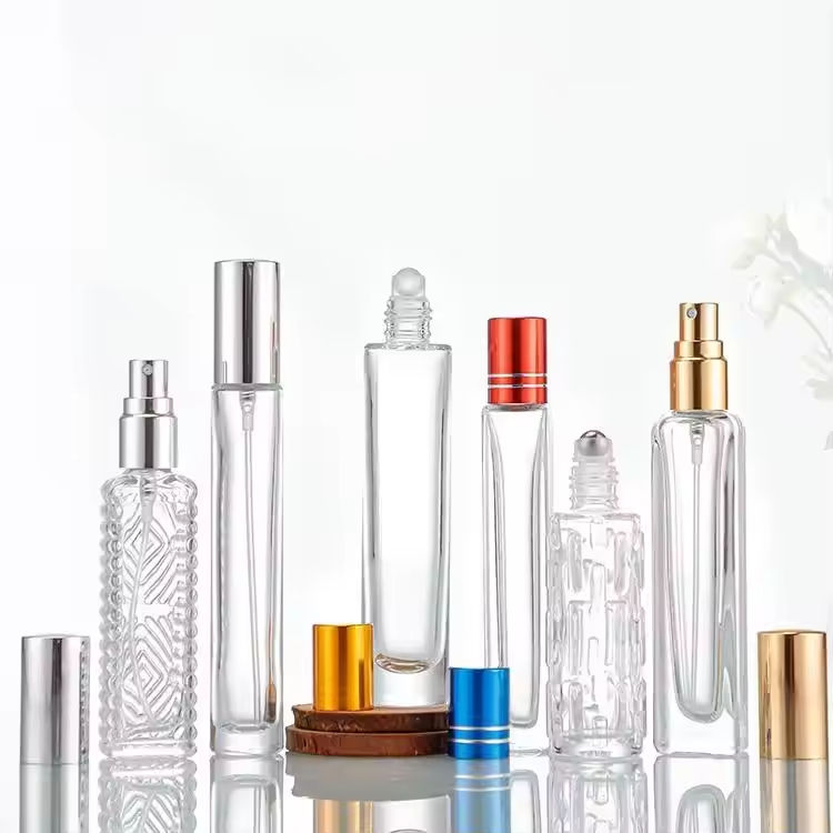 ขวดแก้วน้ำหอมขนาด 10 มล. 15 มล. แบบแยกชิ้น ขวดโรลออนสำหรับน้ำมันหอมระเหย ขวดสเปรย์น้ำหอมแก้วพร้อมฝาสเปรย์