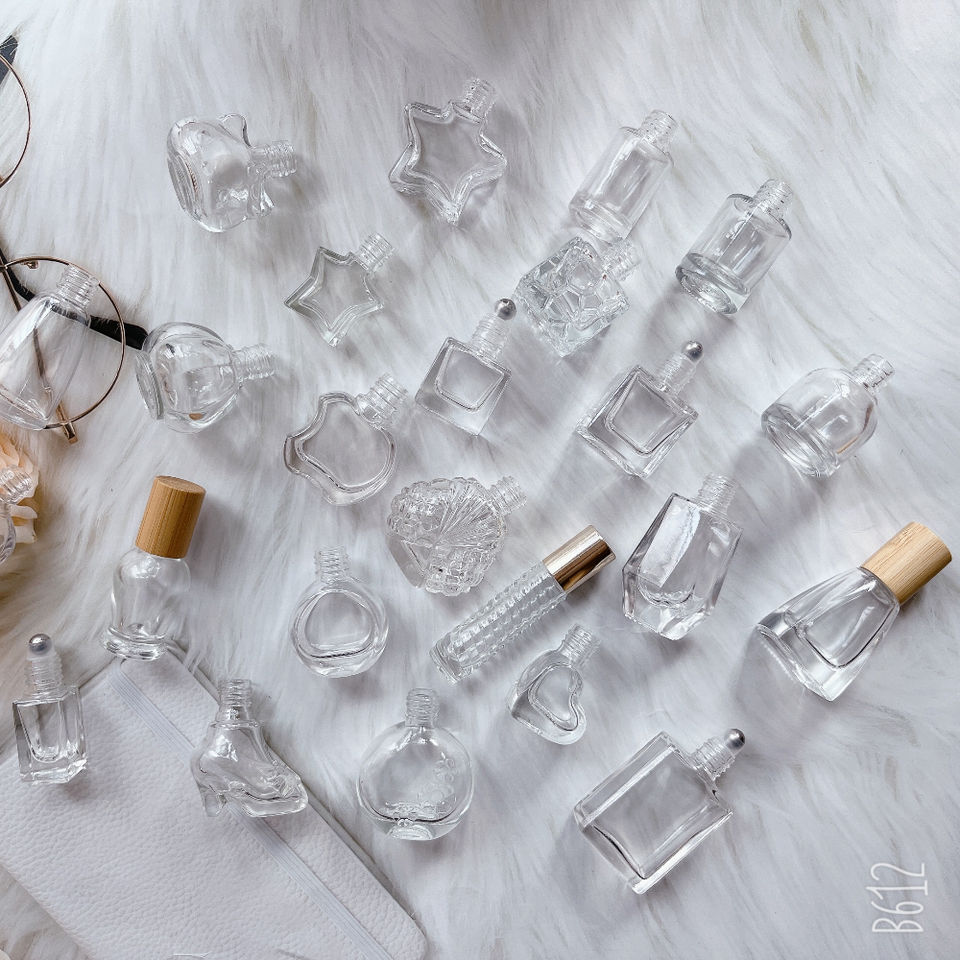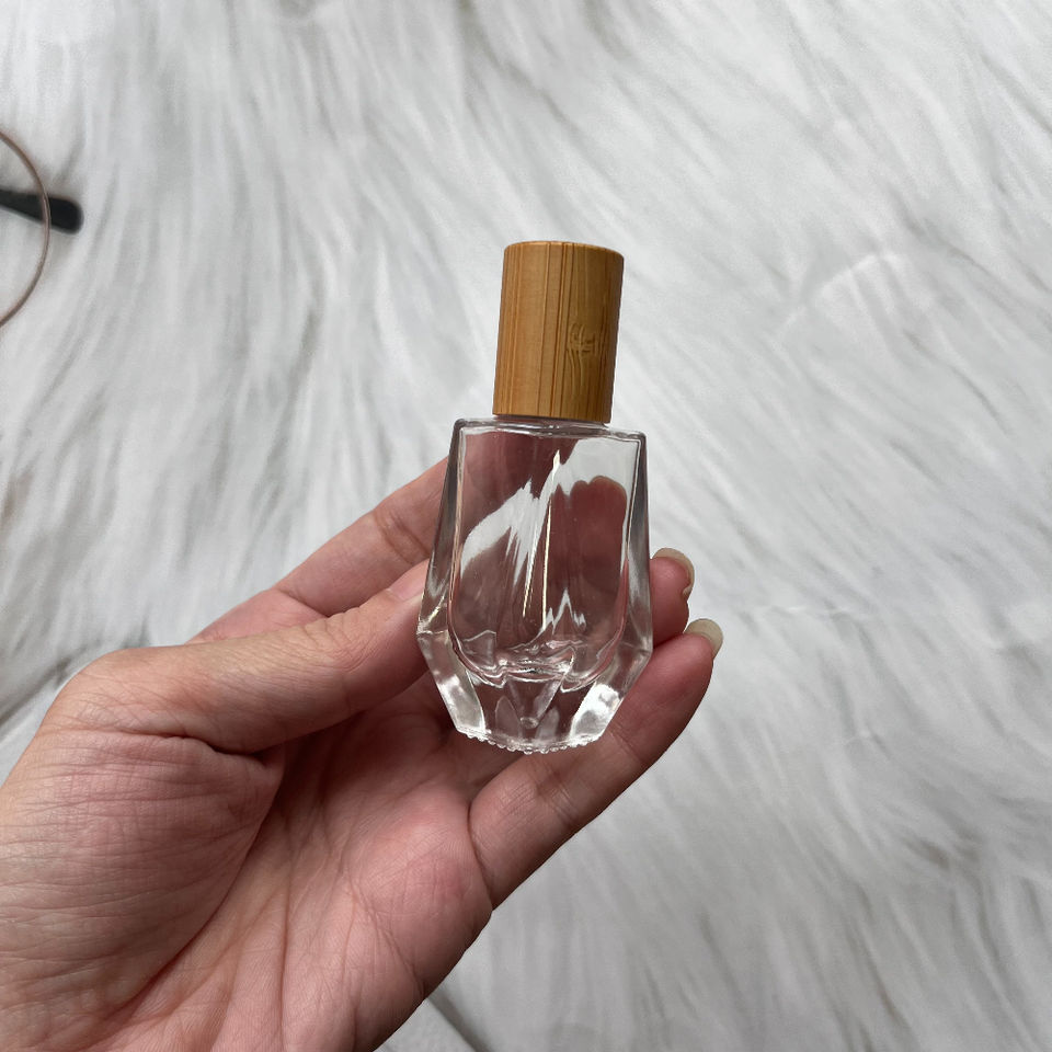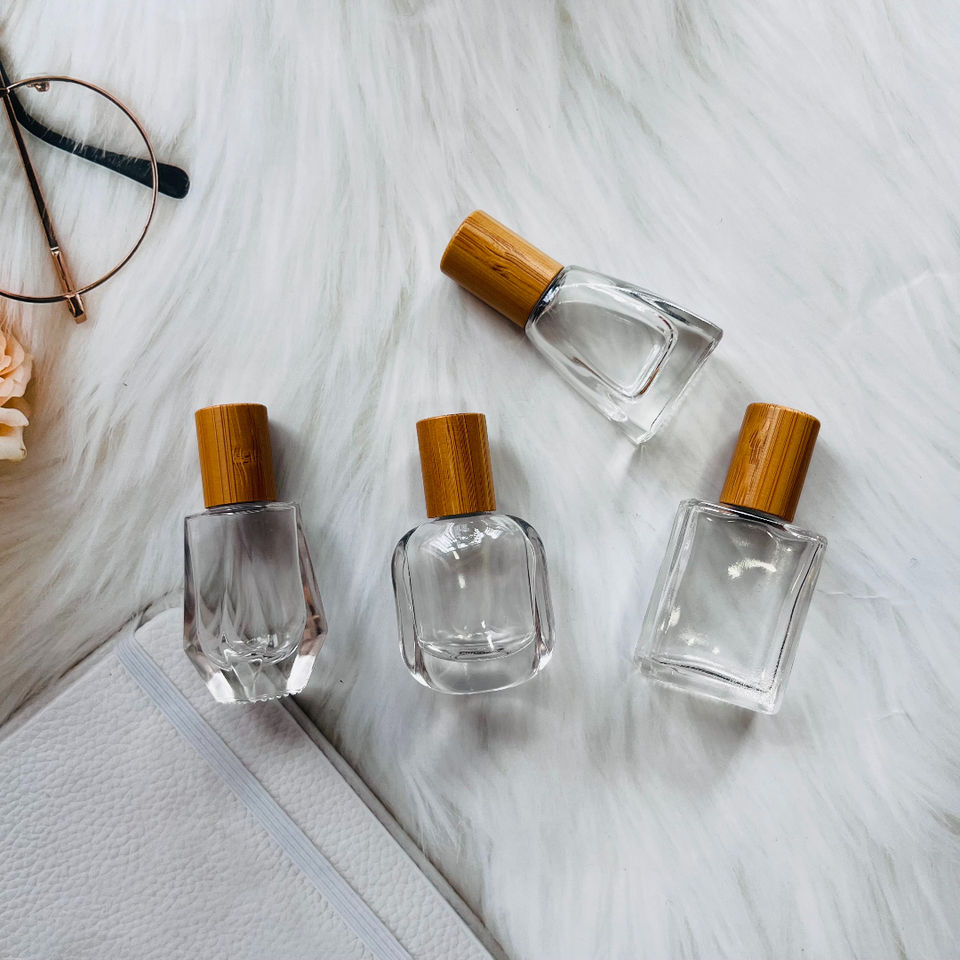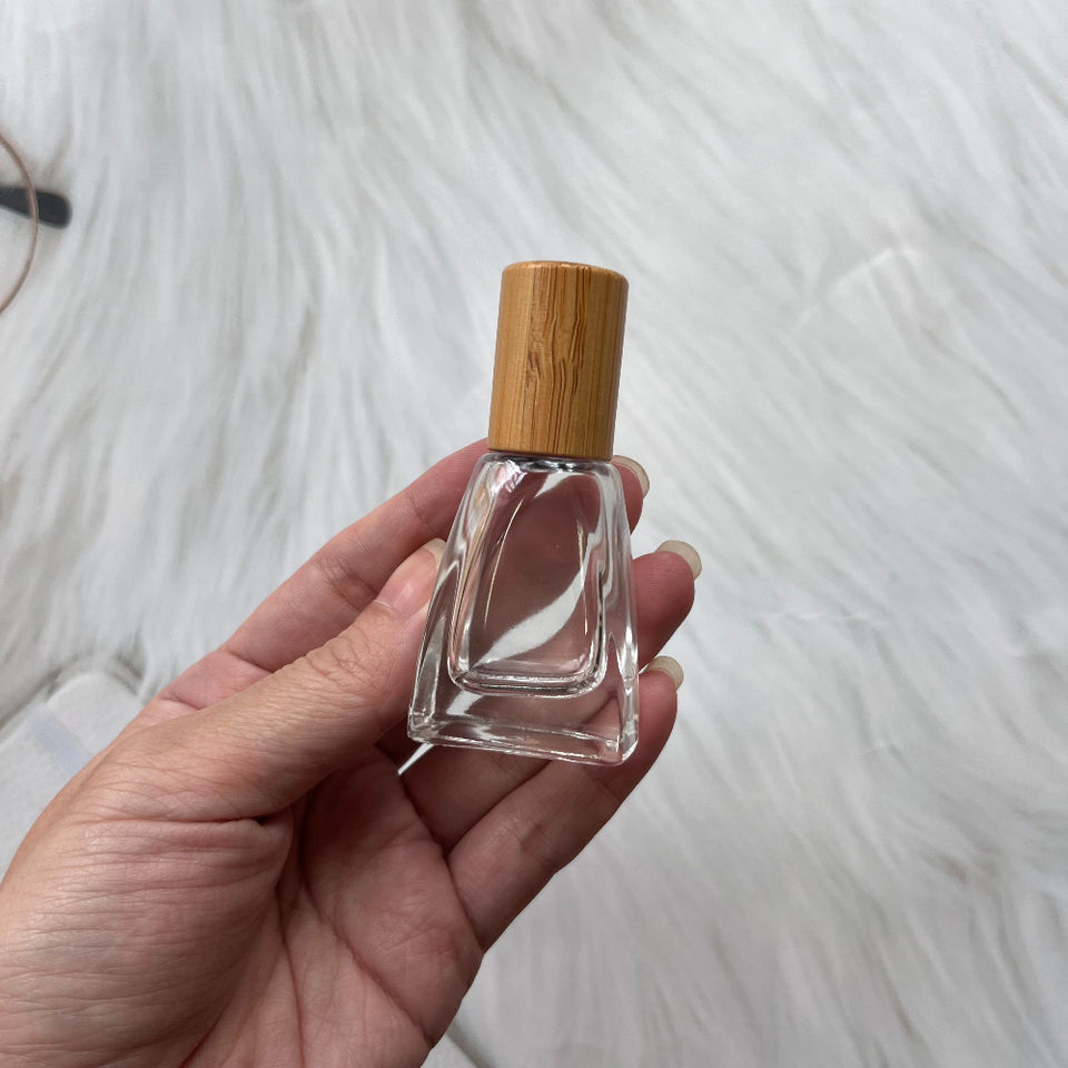 ขวดแก้วใสขนาด 10 มล. พร้อมฝาไม้ไผ่ สำหรับน้ำมันหอมระเหยหรือน้ำหอมแบบลูกกลิ้ง รูปทรงพิเศษ แบบปิดผนึก ความจุ 15 มล.