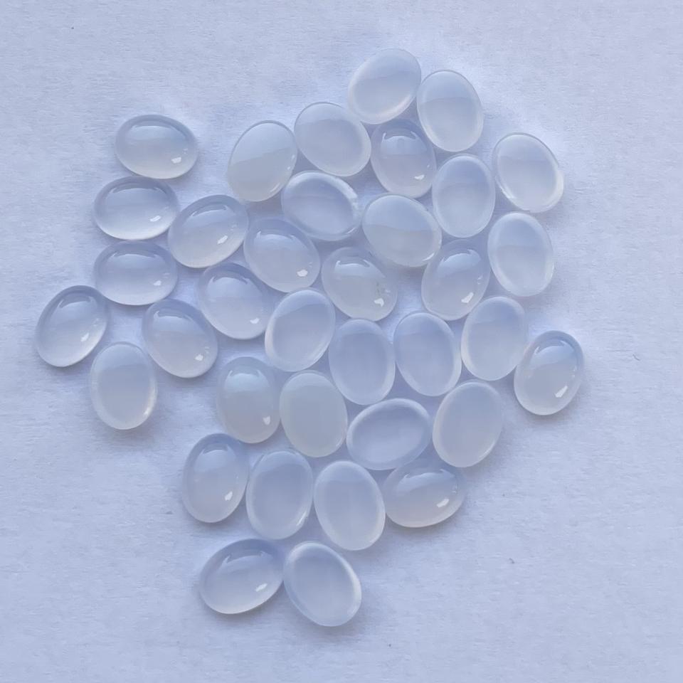 Product Name:10mm 12mm Natural Blue Chalcedony Smooth Oval Cabochon Semi Precious