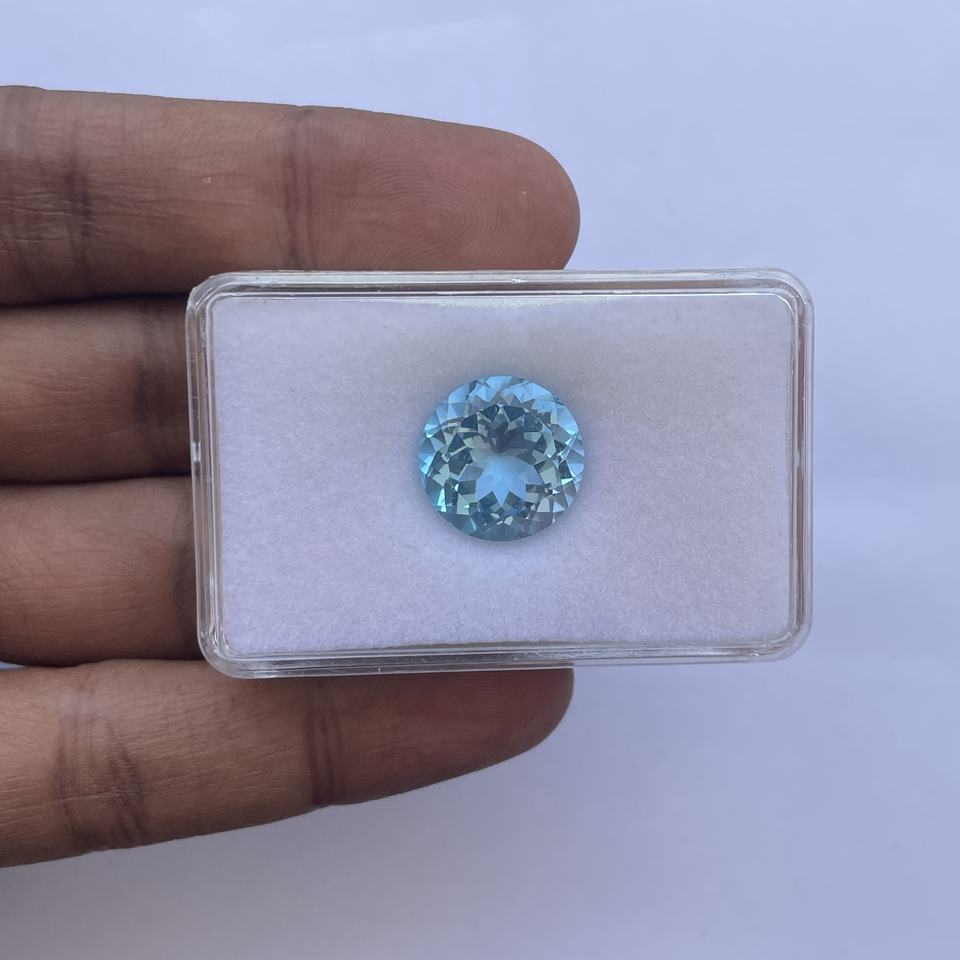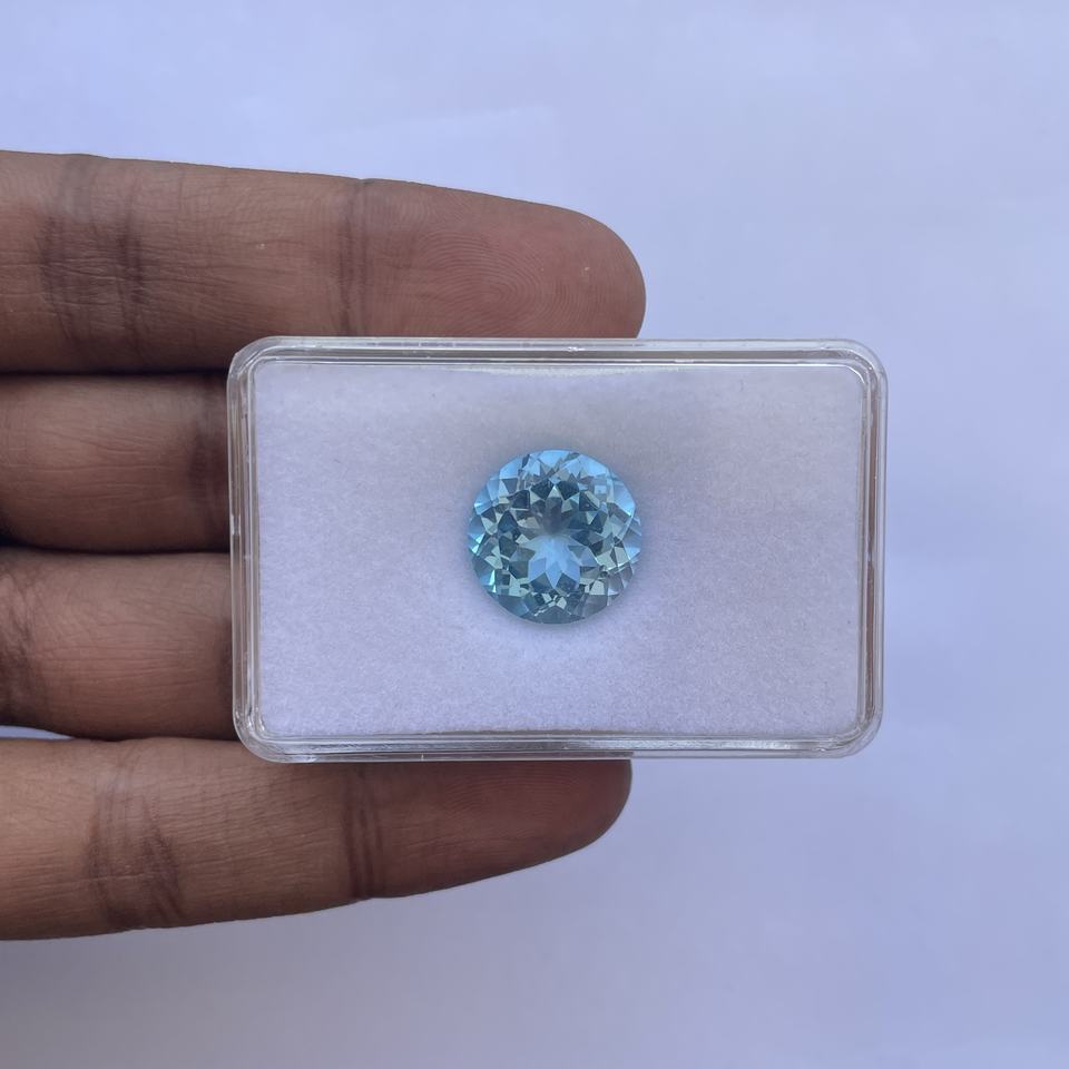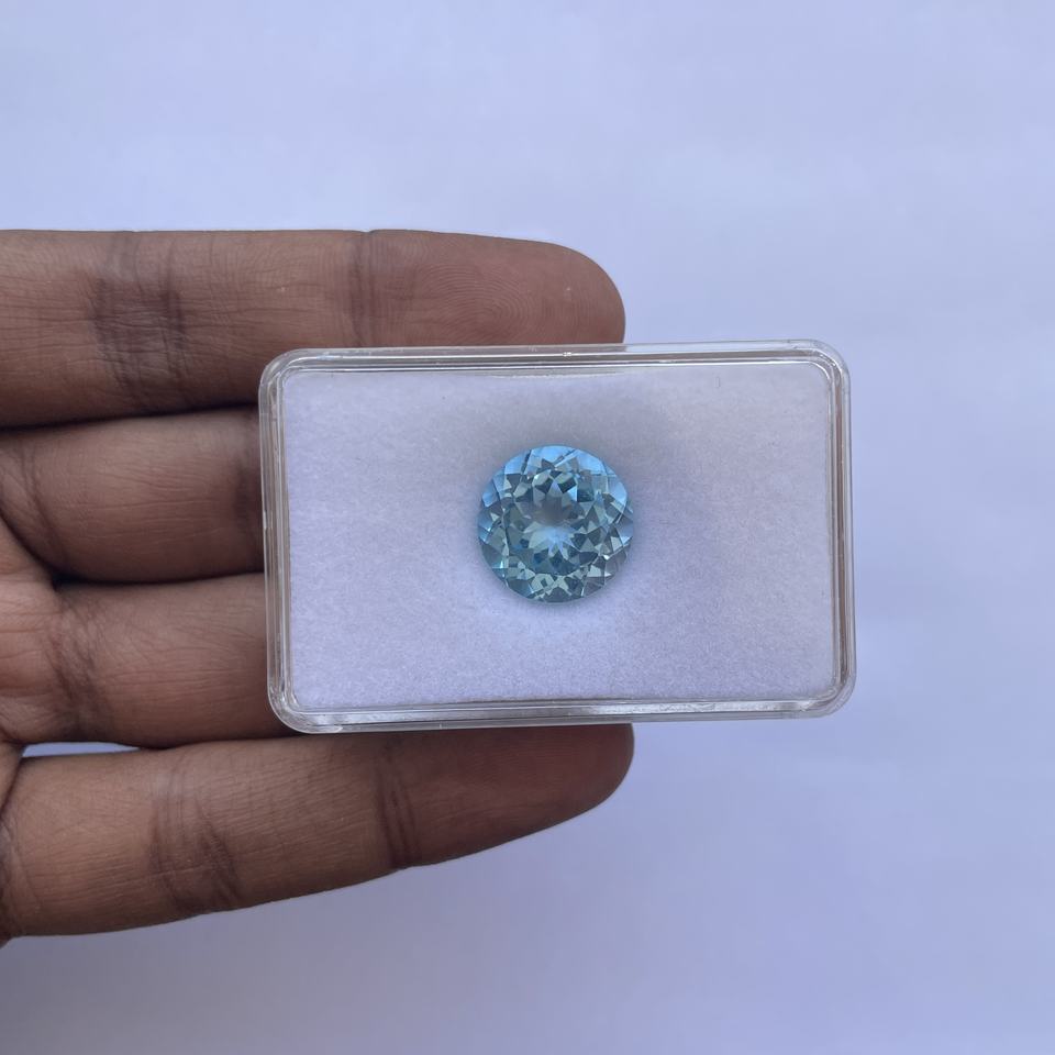 พลอยโทแพซสีฟ้าธรรมชาติ เจียระไนเหลี่ยมกลม แบบเม็ดเดี่ยว
