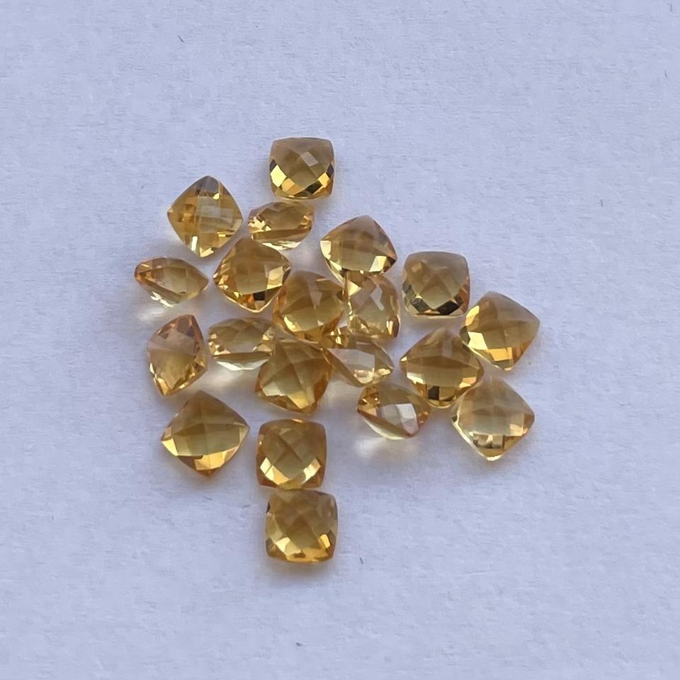 พลอยซิทรินธรรมชาติ เจียระไนแบบ Checker Board ทรงเหลี่ยมเหลี่ยมเพชร เจียระไนเหลี่ยมเพชรทรงหมอน