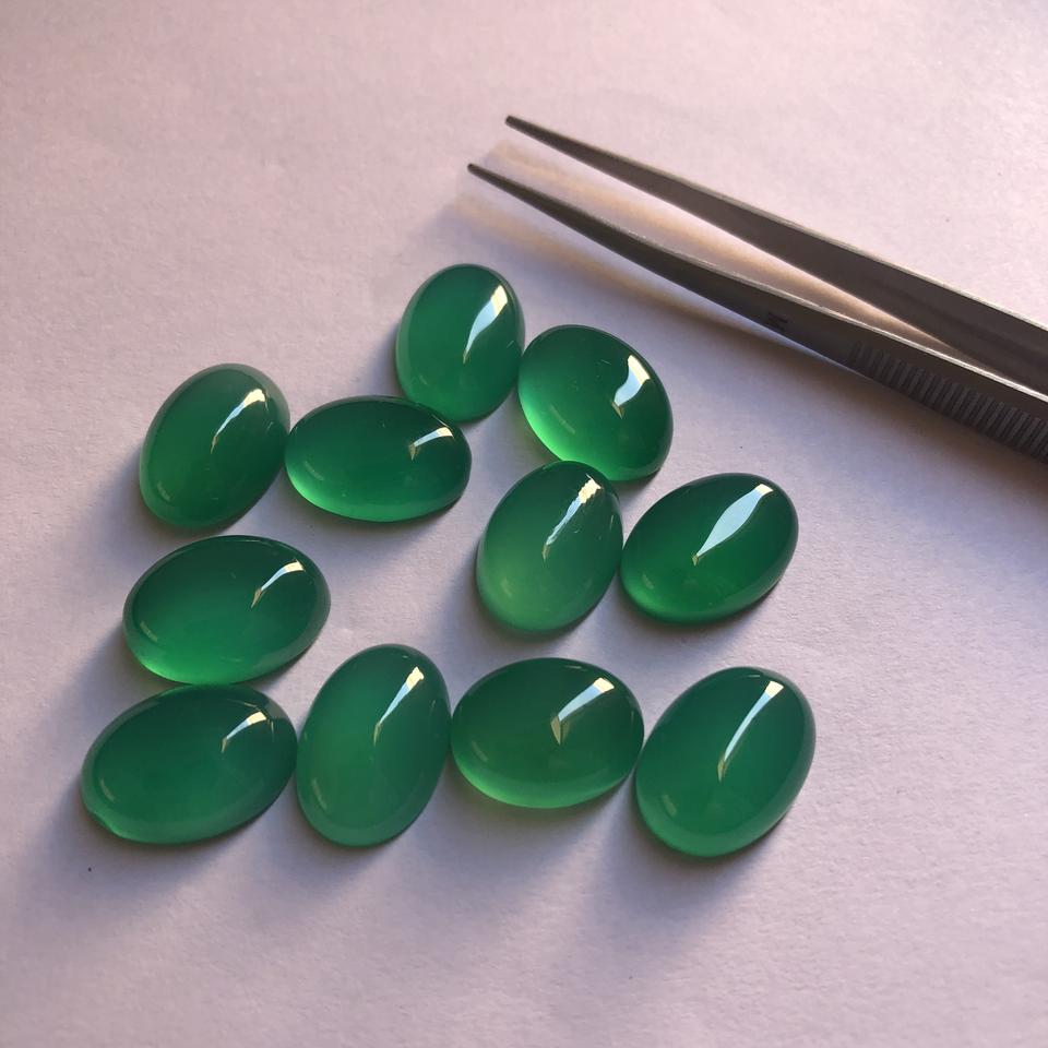 หินโอนิกซ์สีเขียวธรรมชาติ10มม. 12มม. อัญมณีทรงรีหลวมเรียบจากผู้ผลิต2025ขายส่งจำนวนมาก