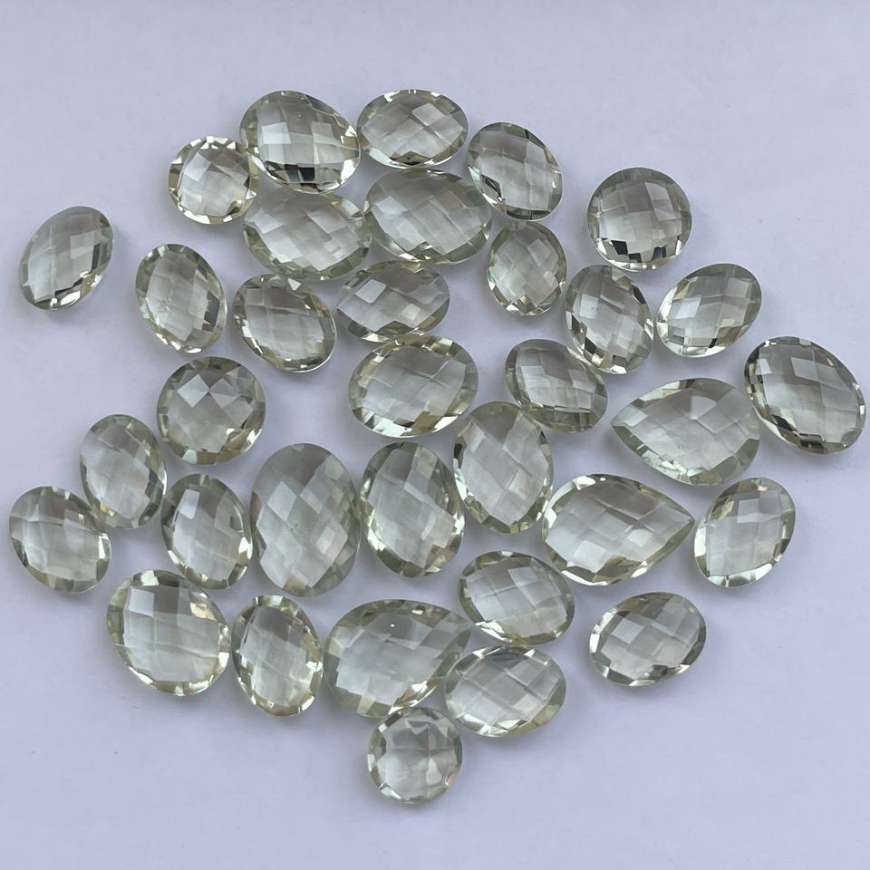 แผ่นหินอเมทิสต์สีเขียวธรรมชาติขนาด10มม. 20มม. แผ่นตรวจสอบรูปไข่ตัดอัญมณีทรงหลวมสำหรับทำเครื่องประดับมีค่า AAA