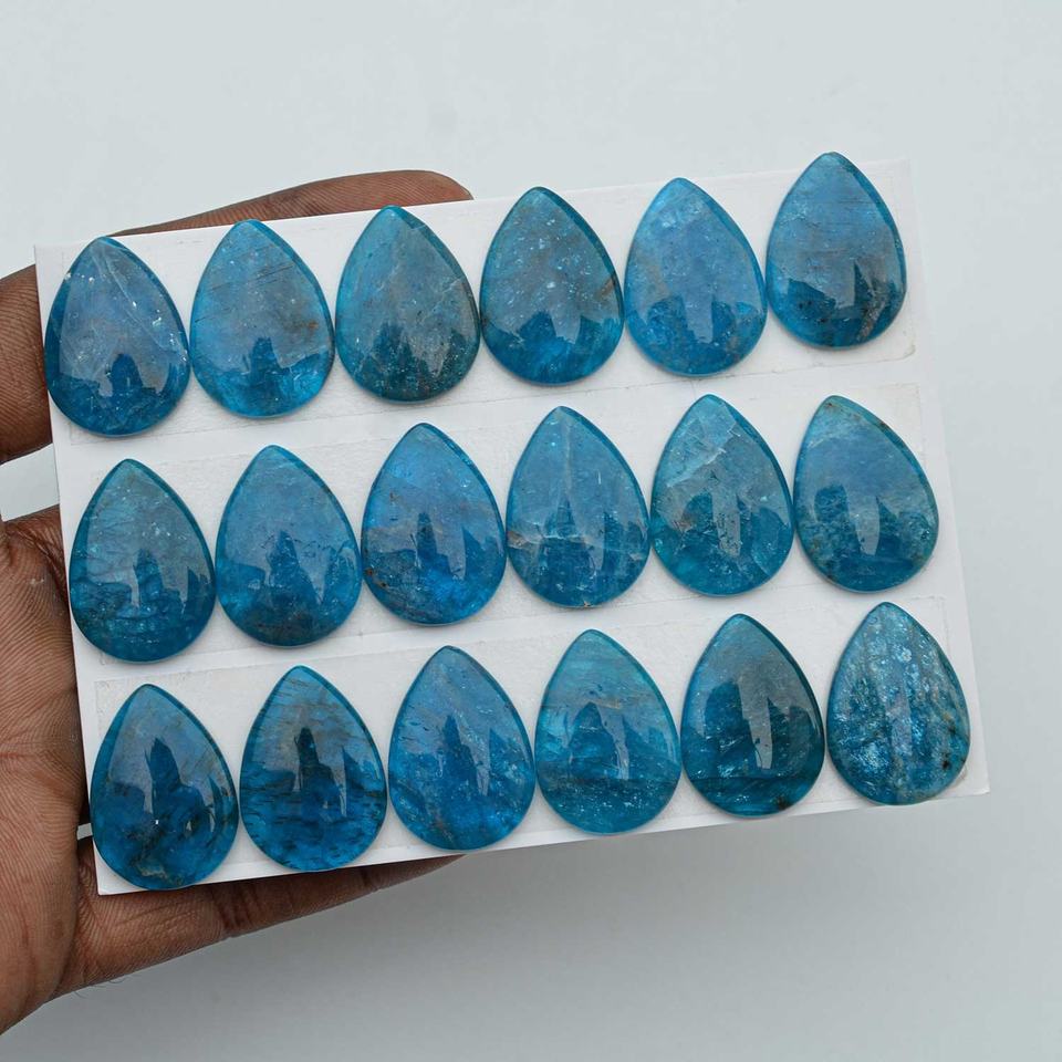 พลอยอะปาไทต์ธรรมชาติ10มม.-20มม. อัญมณีทรงหลังแบนรูปทรงลูกแพร์อะพาไทต์ทำมือ