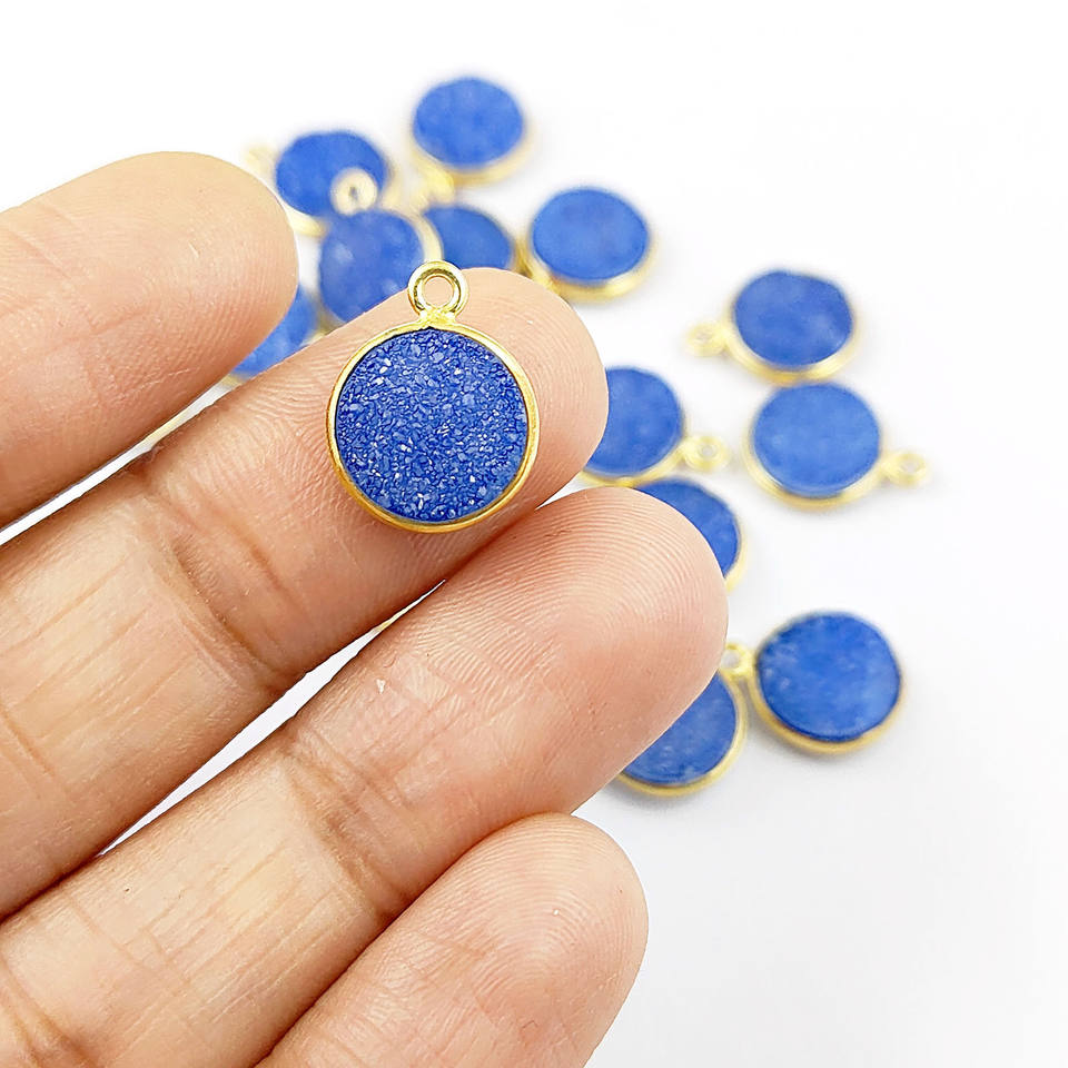 จี้ดรูซี่พลอย10มม. สีทอง18K 925ฝาสีเงินสเตอร์ลิงทำด้วยมือจี้และเสน่ห์