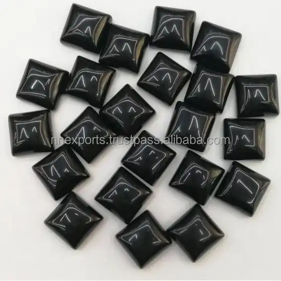 พลอยออนิกซ์สีดำธรรมชาติแท้ขนาด 10 มม. รูปทรงสี่เหลี่ยมแบน สำหรับทำเครื่องประดับ แหวน ต่างหู จี้ DIY อุปกรณ์เสริม