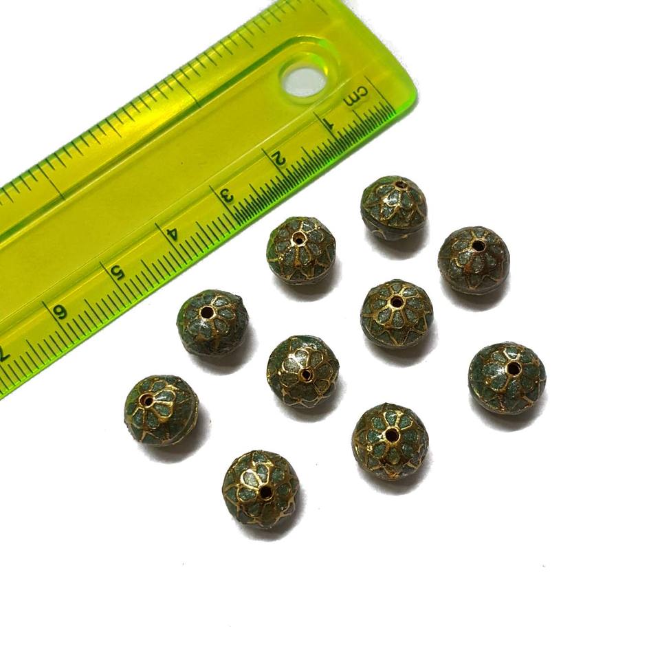 ลูกปัด Meenakari สีเทา10มม. | ลูกปัดกลมเคลือบโบราณลูกปัดงานฝีมือหลวมทำด้วยมือสำหรับการทำเครื่องประดับและอุปกรณ์ DIY