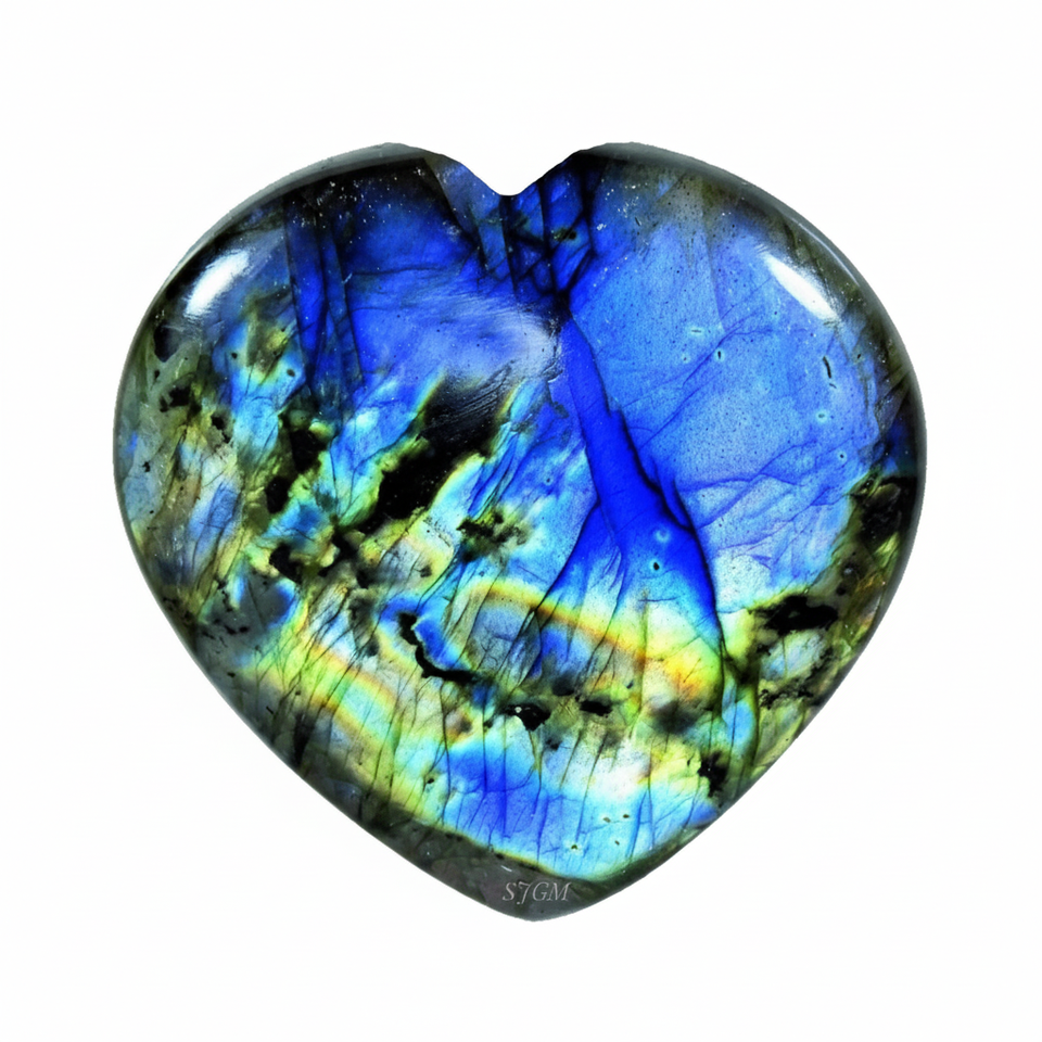 แร่แลบราโดไรต์ธรรมชาติหัวใจ10มม. อัญมณีหลวมหรือสายรุ้งสีดำ