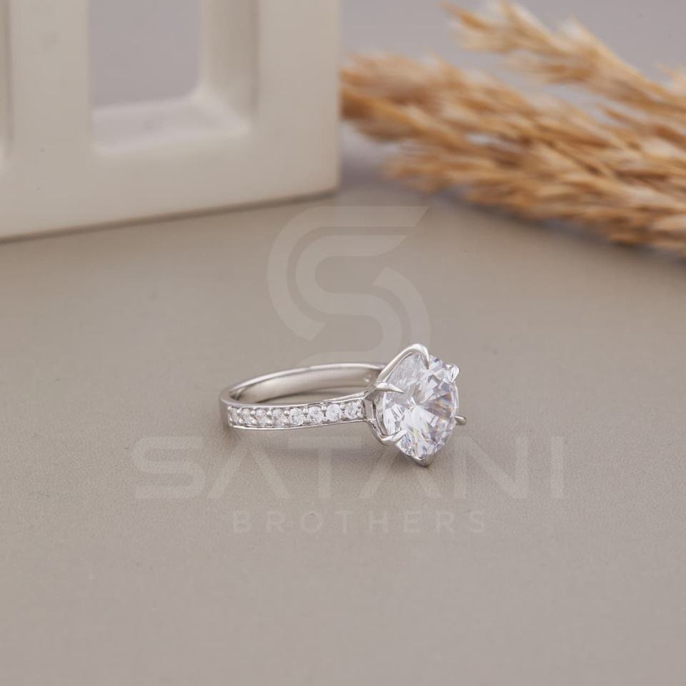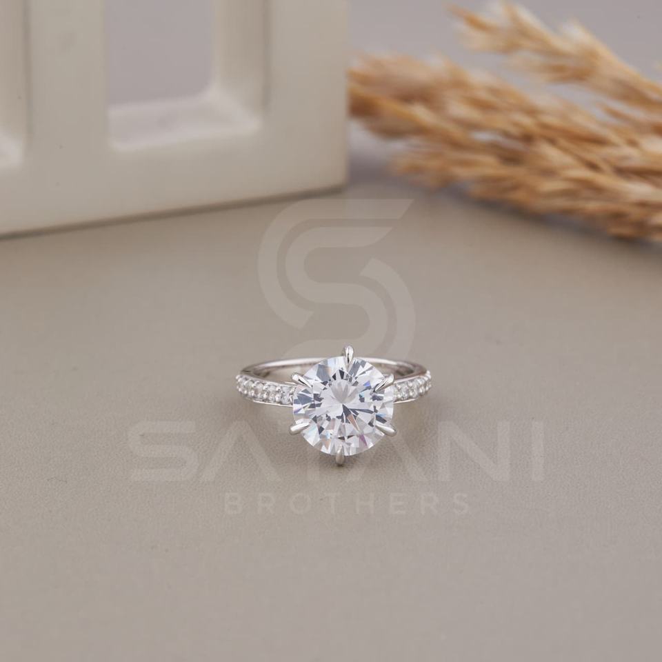 แหวนมอสซาไนต์ทรงโซลิแทร์ขนาด 10 มม. ประดับเพชรแบบพาเว่ วงแหวนทองคำสำหรับงานแต่งงานและหมั้น ดีไซน์หรูหรา ระยิบระยับ โดดเด่น เหมาะสำหรับผู้หญิงในอินเดีย