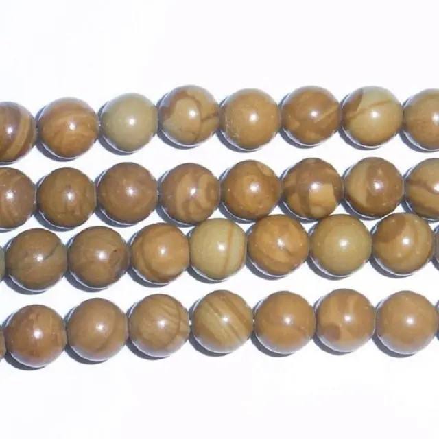 สายลูกปัดหินอัญมณีทรงกลมสีอูฐแจสเปอร์ธรรมชาติ