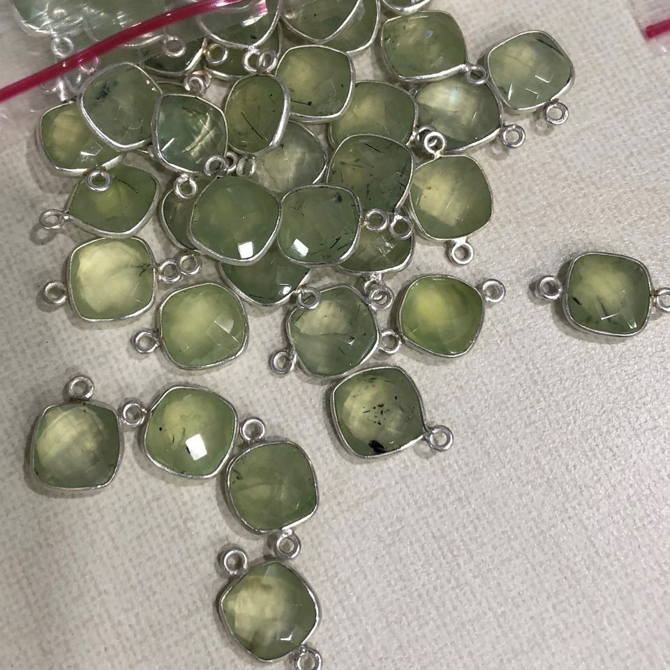 10มิลลิเมตร Prehnite พลอยเบาะเงินเชื่อมต่อฝาสำหรับการทำเครื่องประดับในราคาโรงงานขายส่งจากซัพพลายเออร์ผู้ผลิต