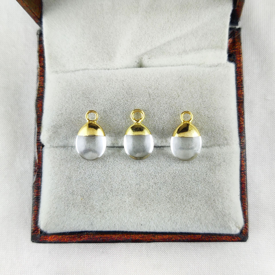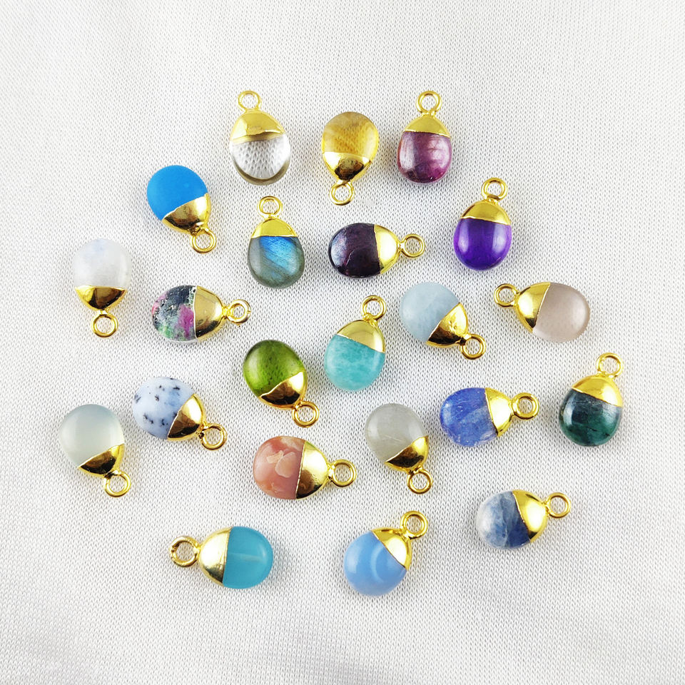 จี้ควอทซ์คริสตัลเรียบ10มม. ชุบทองอัญมณีแท้พร้อมทองแดงขายส่งเครื่องประดับ