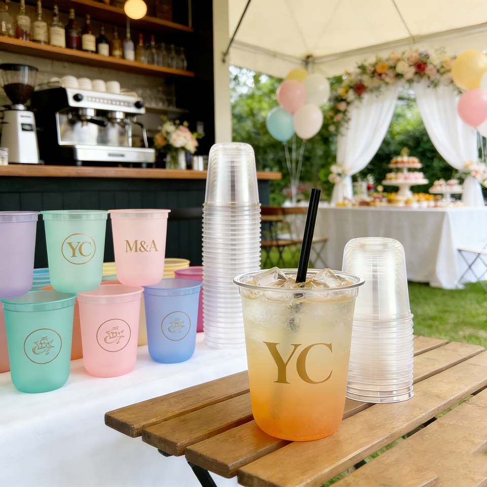 แก้วพลาสติกใช้แล้วทิ้ง สำหรับใส่ น้ำผลไม้ ชานม งานแต่งงาน งานเลี้ยง