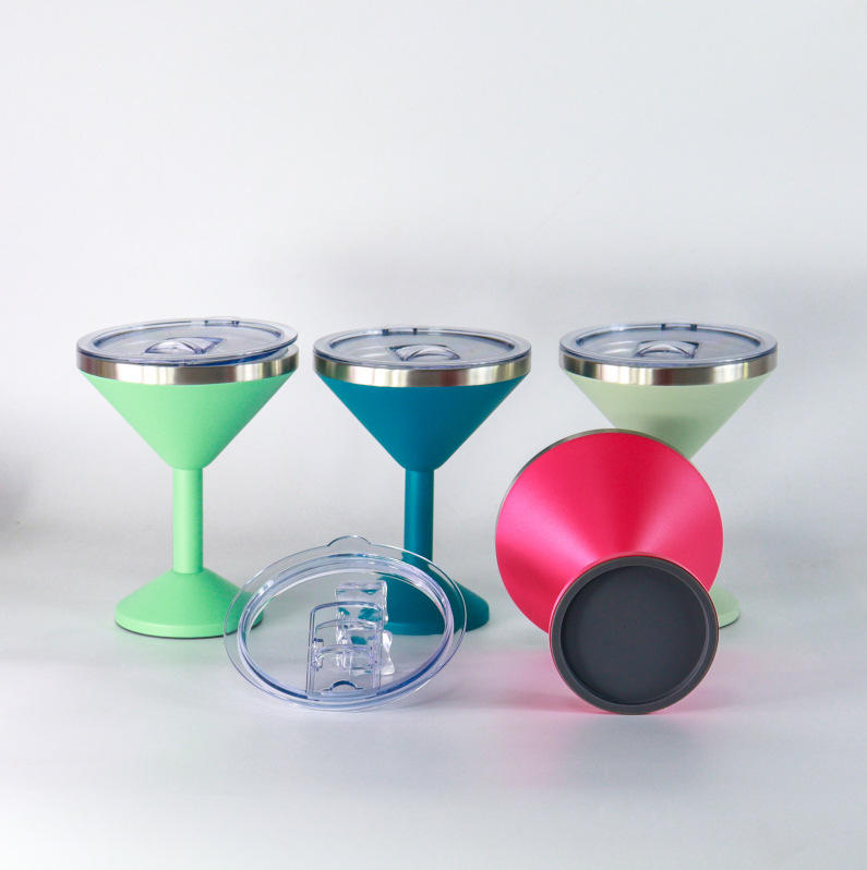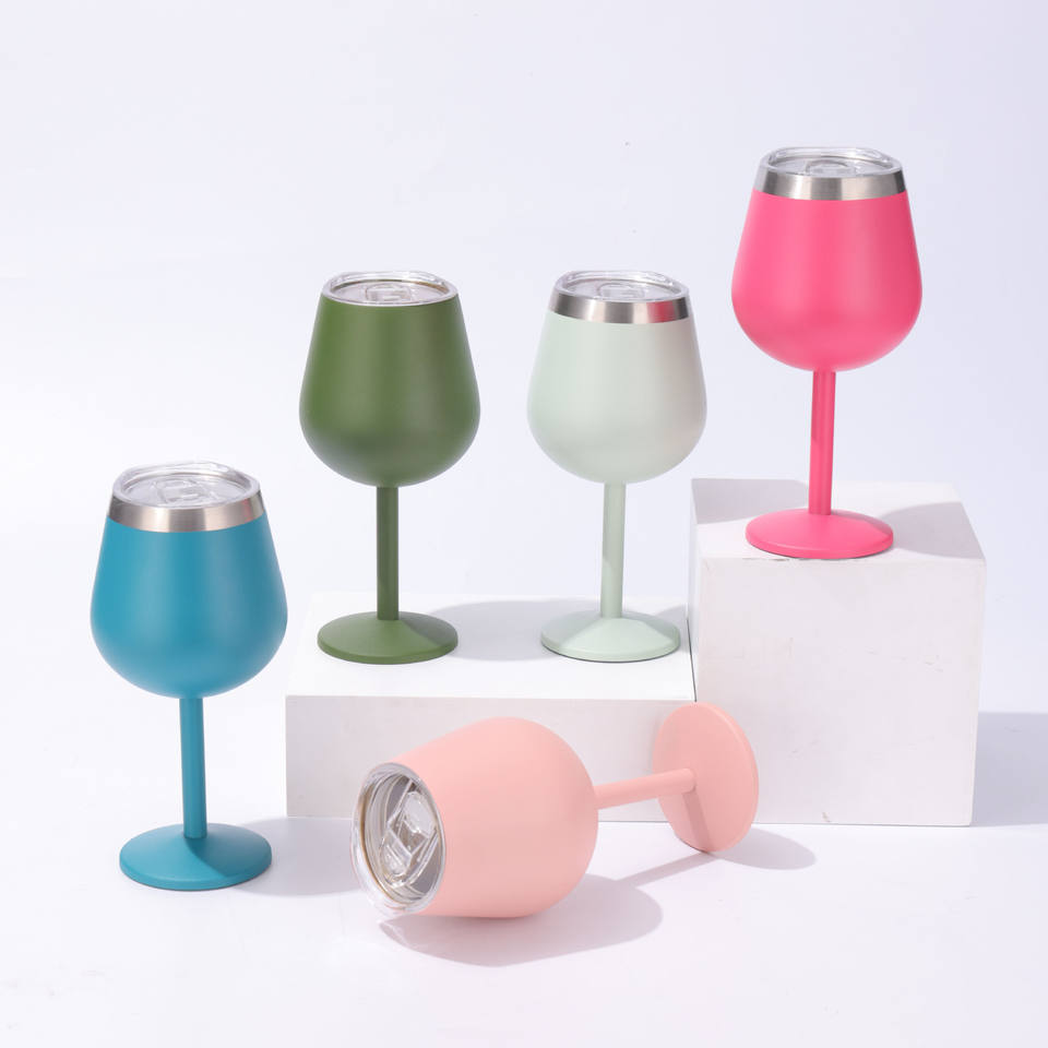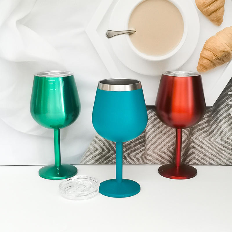 แก้วไวน์สแตนเลสแบบสองชั้น ขนาด 10 ออนซ์ แก้วไวน์ทรงสูง แก้วไวน์