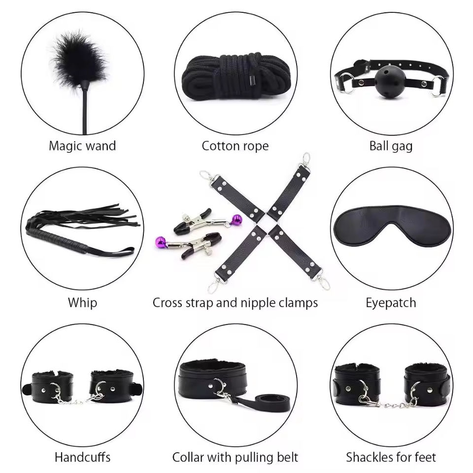 ชุดอุปกรณ์ทางเพศสำหรับผู้หญิง10ชิ้นผ้ากำมะหยี่มัดสำหรับใส่บนเตียงอุปกรณ์ทางเพศสำหรับผู้ใหญ่