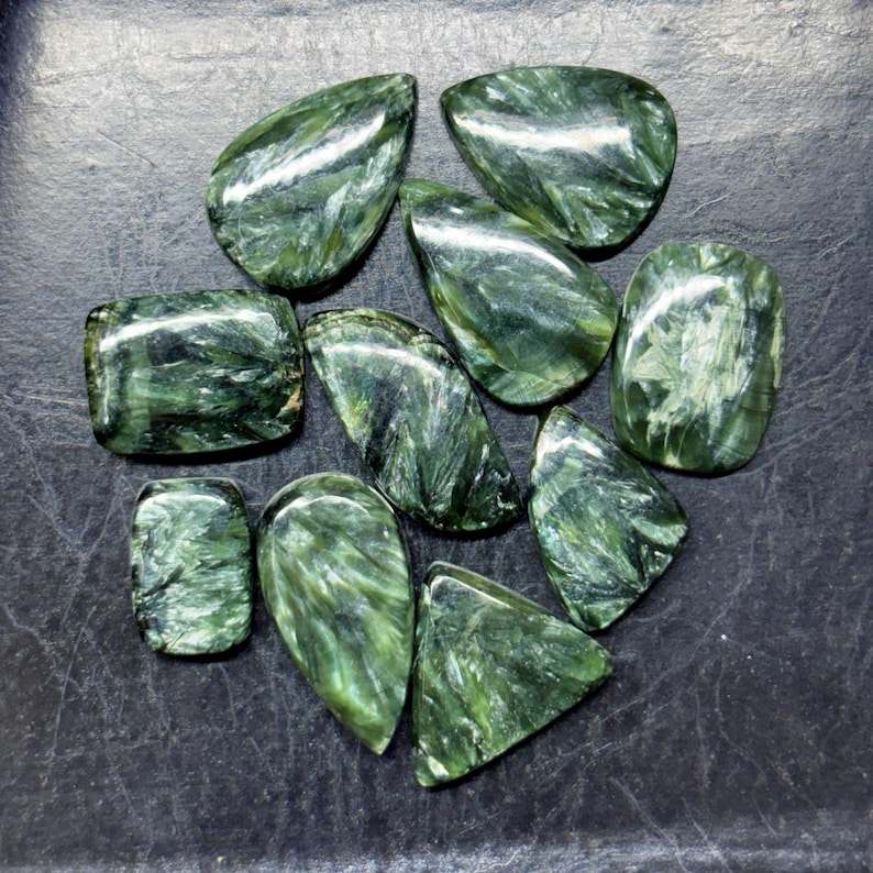 10ชิ้นพลอย seraphinite ธรรมชาติพลอย cabochons อัญมณีหลวมสำหรับ191Cts เครื่องประดับ