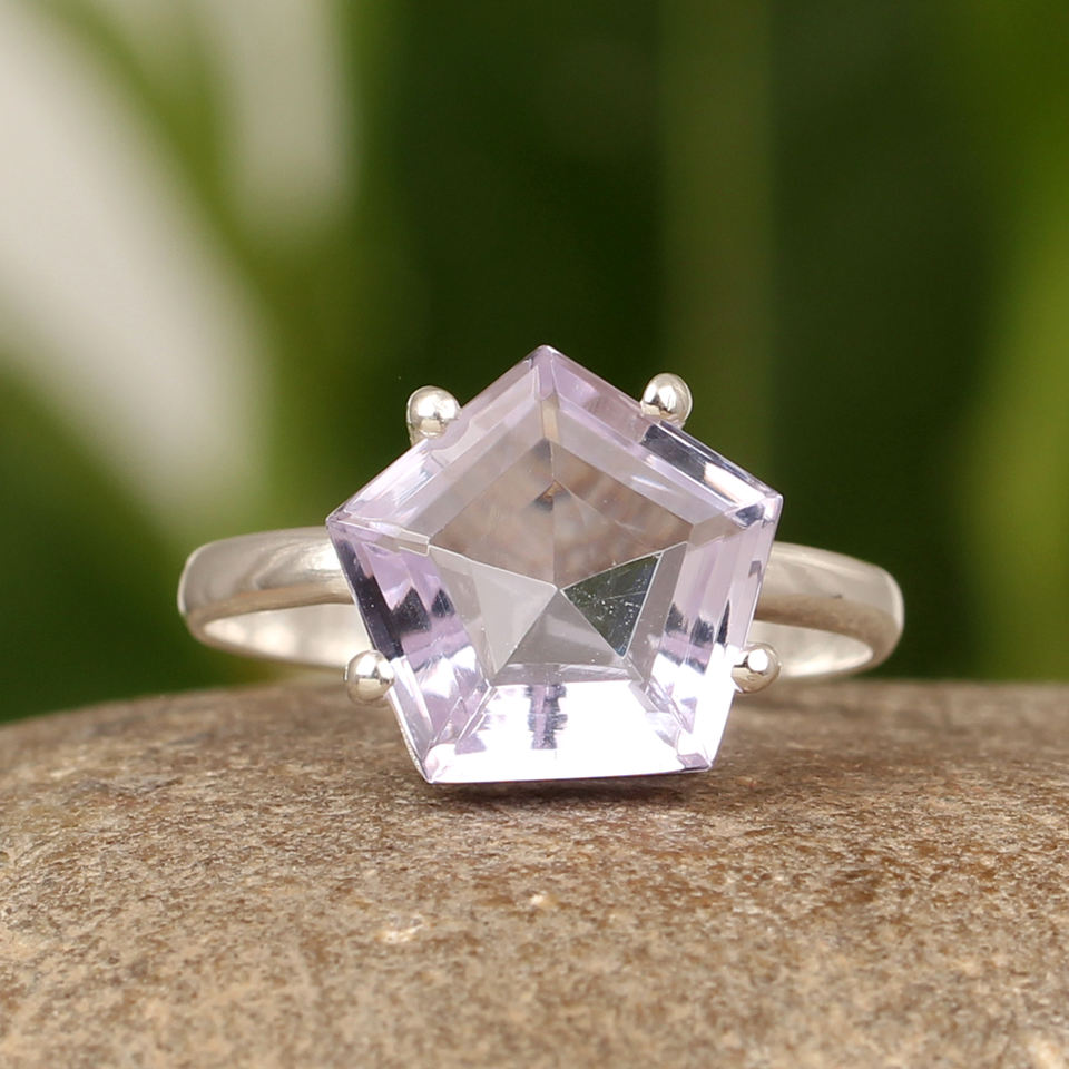แหวนรูปดาวประดับพลอยควอตซ์สีชมพูอะเมทิสต์สังเคราะห์ขนาด 10x10 มม. ทำด้วยมือจากเงินแท้ 925 ดีไซน์ทันสมัยสำหรับผู้หญิง เหมาะสำหรับงานแต่งงาน