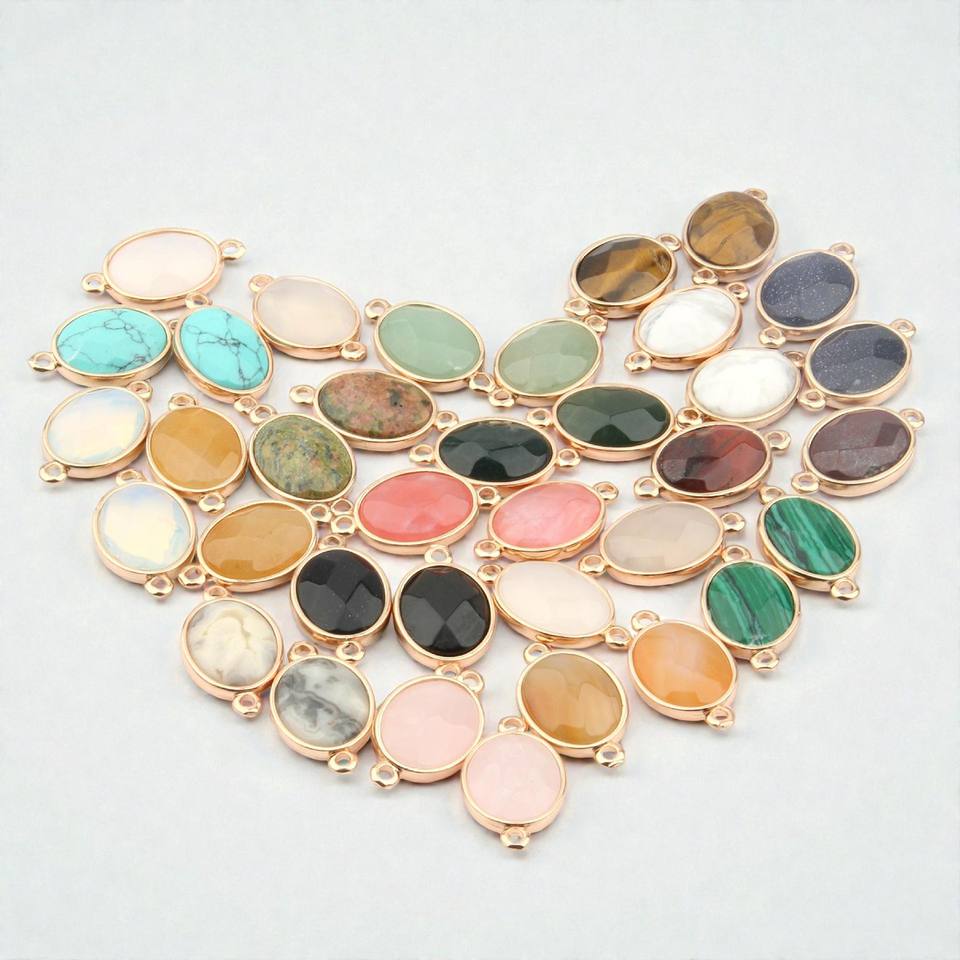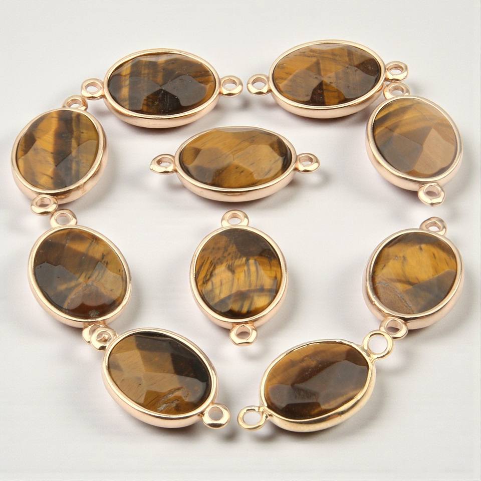 ตัวเชื่อมต่อรูปไข่ประดับพลอยไทเกอร์อายธรรมชาติขนาด 10x14 มม. | อุปกรณ์ทำเครื่องประดับเงินแท้ชุบทอง
