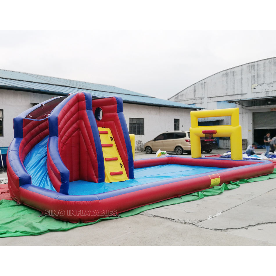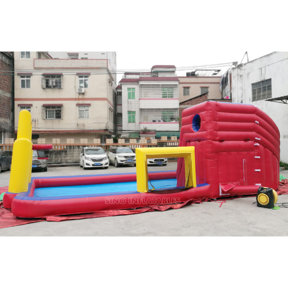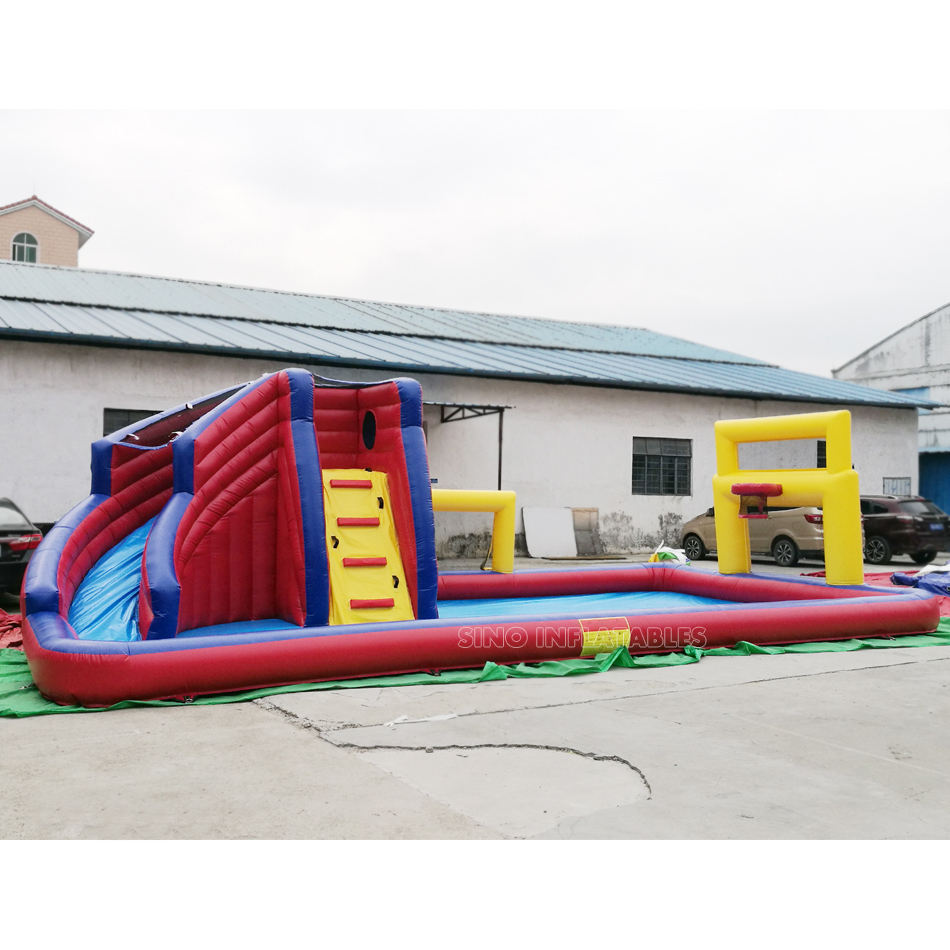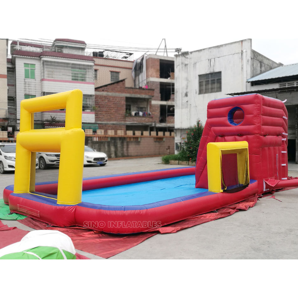 สระเป่าลมขนาด10X5ม.,สระเด็ก Banzai สไลเดอร์พร้อมลูกฟุตบอลและห่วงบาสเก็ตบอลทำจากวัสดุตะกั่วสำหรับงานเลี้ยงเด็ก