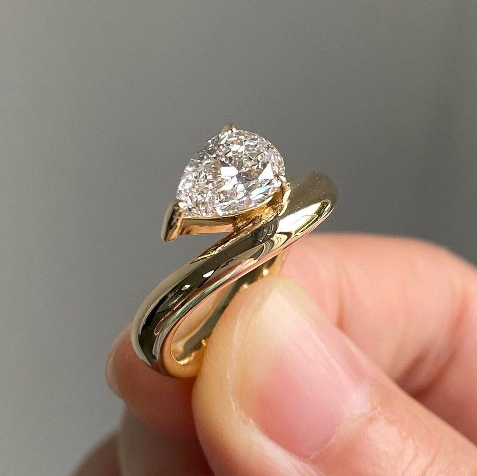 10x7มม. แหวนเพชรลูกแพร์ตัดในห้องปฏิบัติการผู้ผลิตเครื่องประดับเพชรในสหรัฐอเมริกาผู้ผลิตเครื่องประดับเพชรในอินเดีย