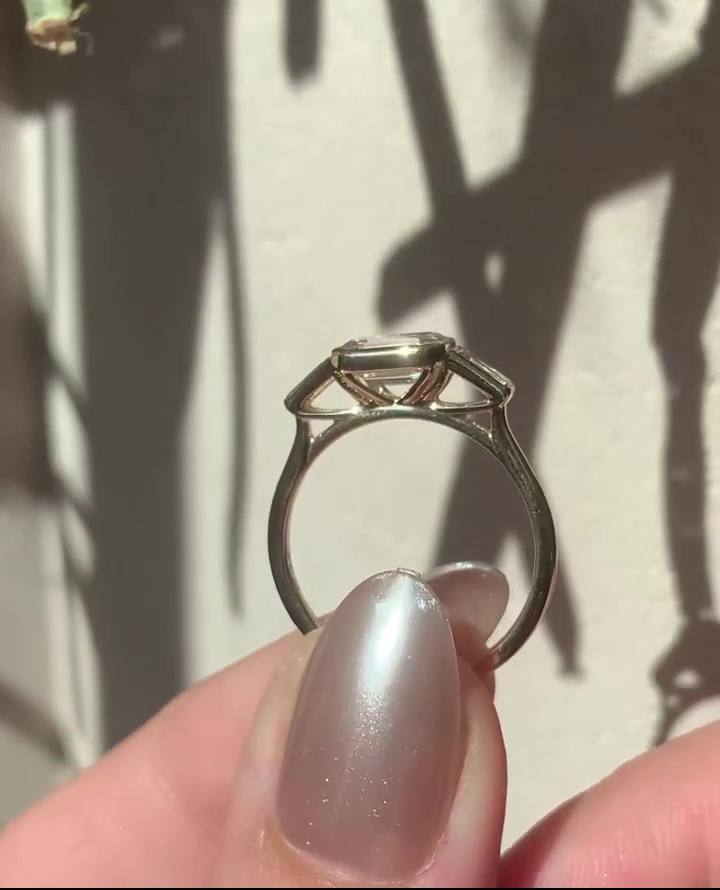 แหวนหมั้นเพชรสังเคราะห์สีขาวมรกต10x7มม. สีทองประดับหินด้านข้างแบบบาแกตต์เครื่องประดับแบบคลาสสิก
