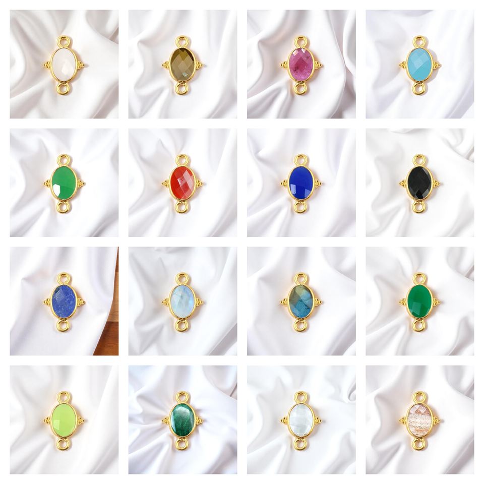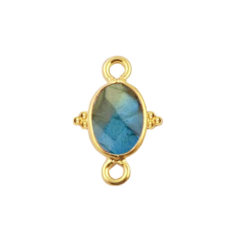 ตัวเชื่อมต่อพลอยลาบราดอไรต์ธรรมชาติขนาด 10x8 มม. – ตัวเรือนรูปไข่เงินแท้ 925 พร้อมห่วงคู่