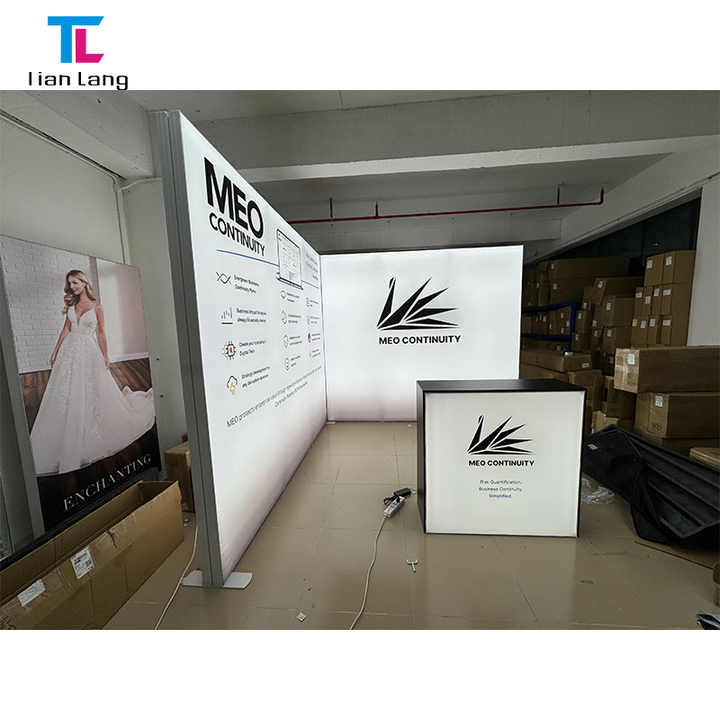10x8ft อลูมิเนียมแบบพกพาผ้าสีพิมพ์ติดตั้งอย่างรวดเร็ว Backlit งานแสดงสินค้าบูธนิทรรศการจอแสดงผล LED Light BOX