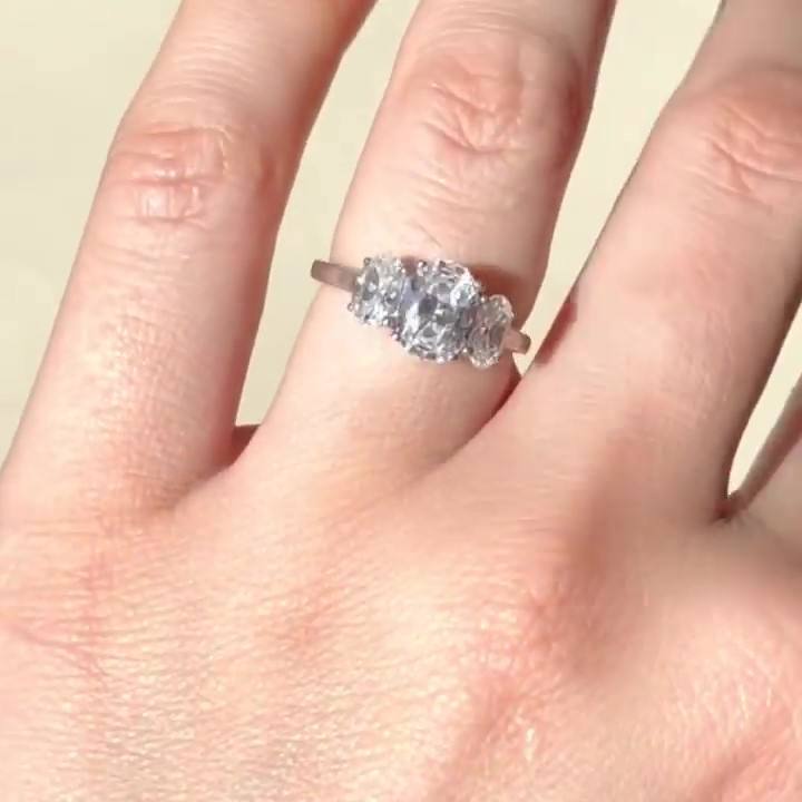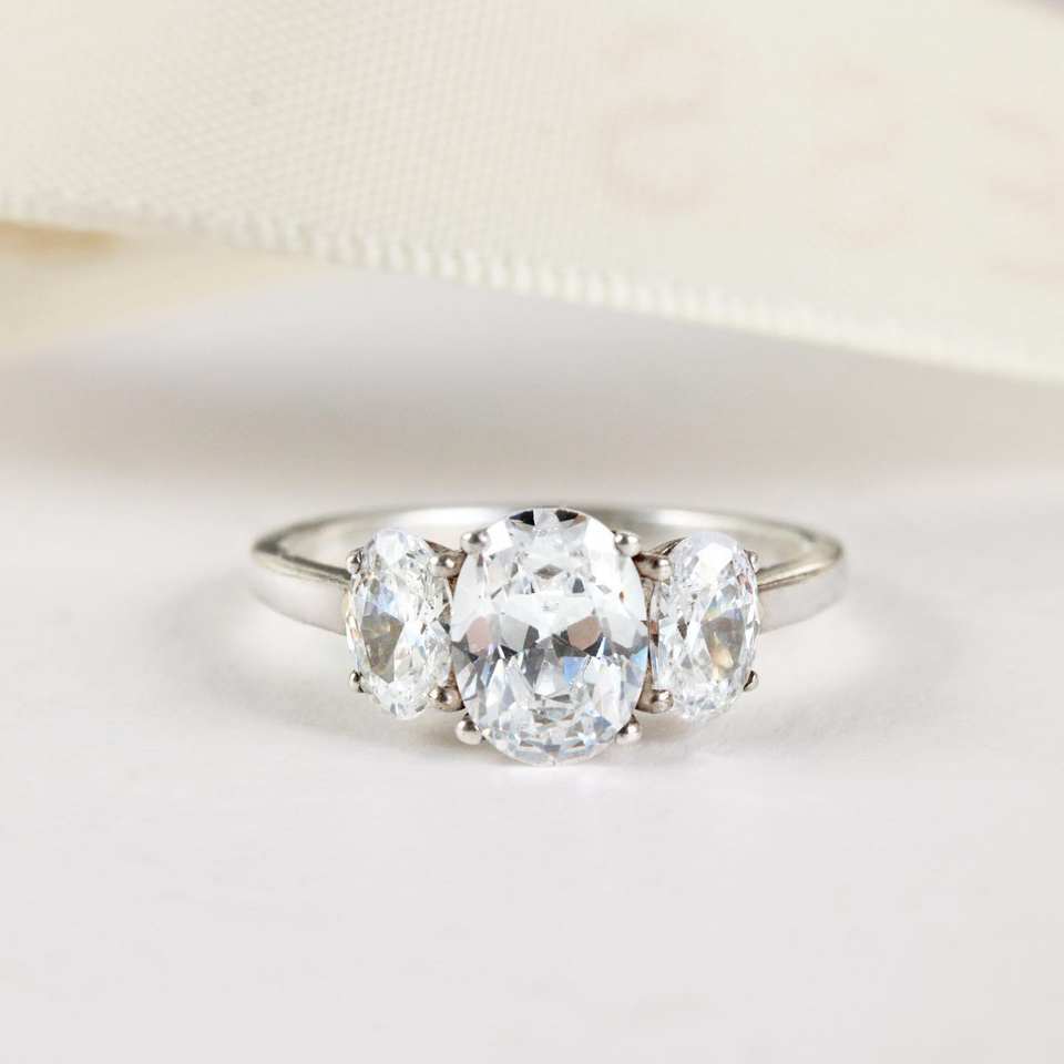 10x8มม. แหวนเพชรโมอิสทรงรีตัด | สามหินรูปไข่แหวนเจ้าสาว | เงินหรือทองเครื่องประดับงานแต่งงานตามสั่ง