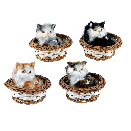 10x8x10cm Decorative Faux Fur Cat in Basket Music Box with Sound for Cat Lovers
