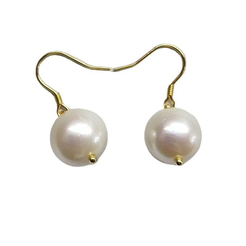 ต่างหูมุกน้ำจืดทรงกลมขนาด 11-12 มม. สีขาว พร้อมตะขอเกี่ยวหูเงิน S925 ชุบทอง ดีไซน์เรียบง่าย