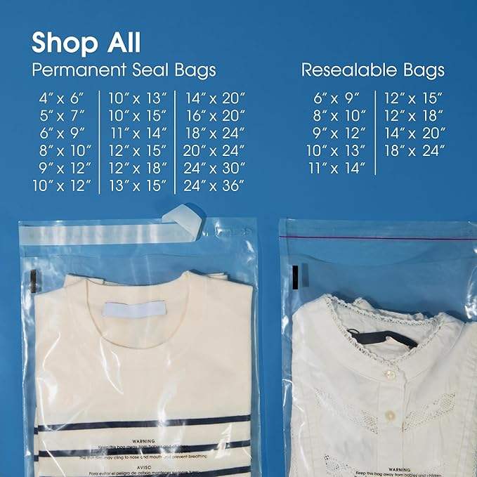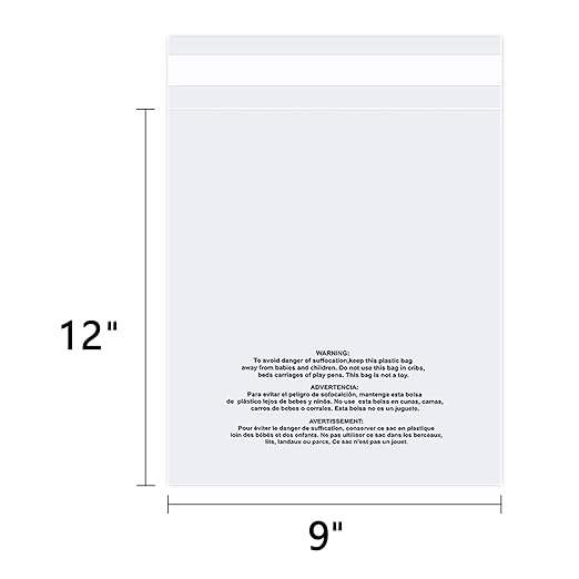 ถุงโพลีใสปิดผนึกได้ขนาด11*14นิ้ว (จำนวน200) พร้อมคำเตือนการหายใจไม่ออกสำหรับบรรจุภัณฑ์เสื้อยืดและกาวปิดผนึกได้