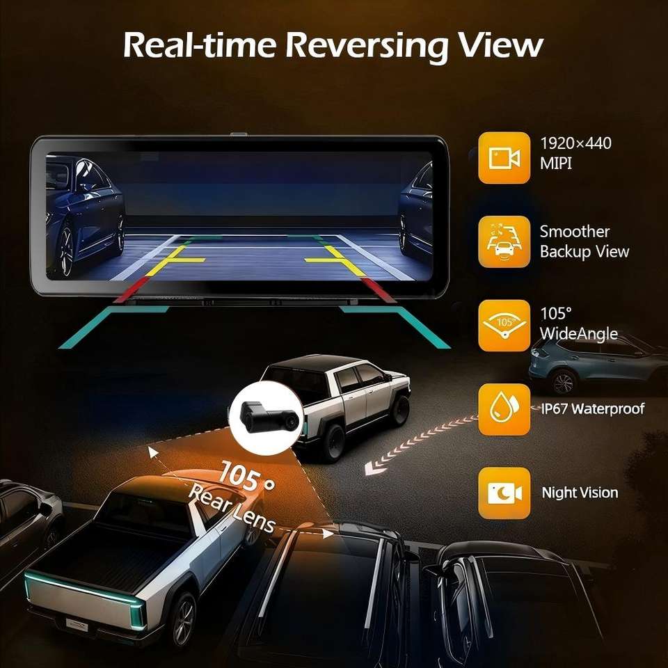 กระจกมองหลังแบบสตรีมมิ่งขนาด 11.26 นิ้ว พร้อมกล้องบันทึกหน้า-หลังความละเอียด 2.5K สำหรับรถไซเบอร์ทรัค