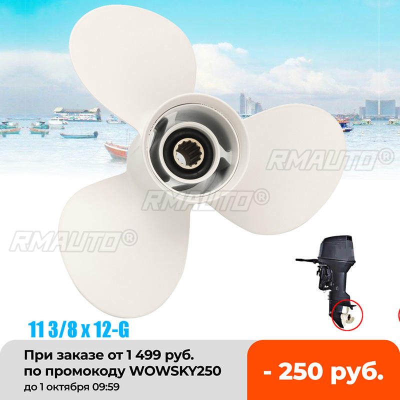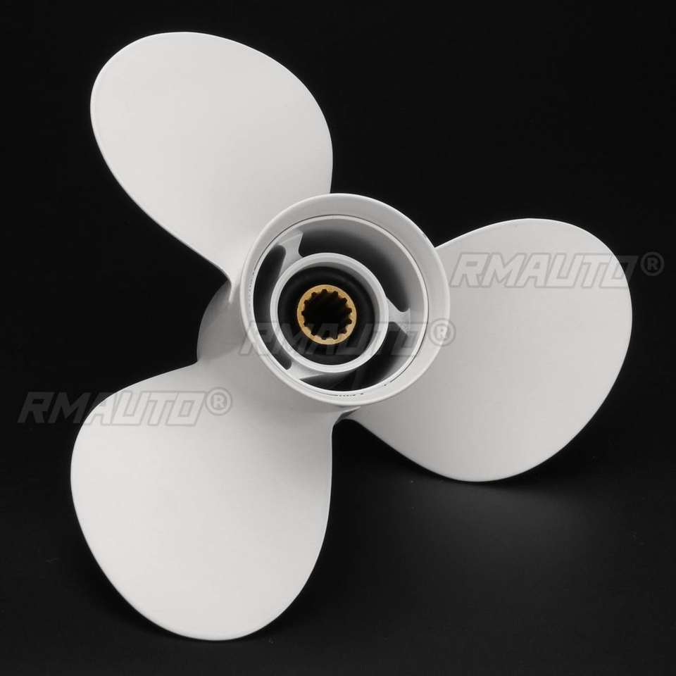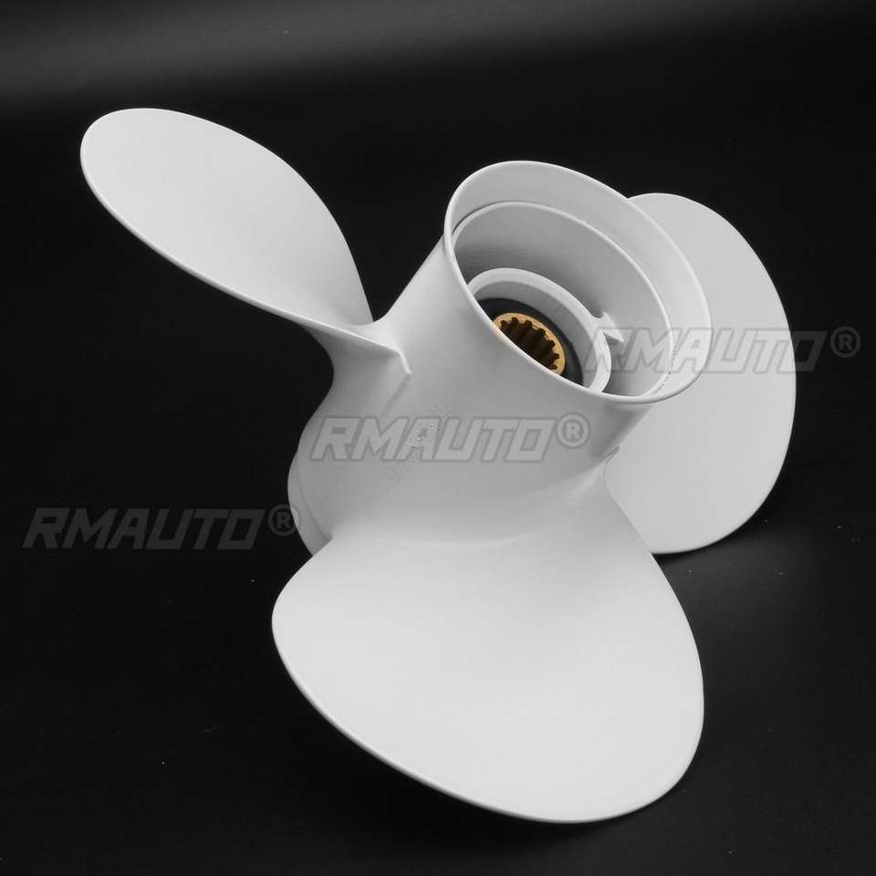 ใบพัดเรืออลูมิเนียม 11 3/8x12 นิ้ว สำหรับเครื่องยนต์ยามาฮ่า 40 48 50 55 60 แรงม้า 13 ร่อง ขนาดเส้นผ่านศูนย์กลาง 90 มม. สีขาว 3 ใบพัด