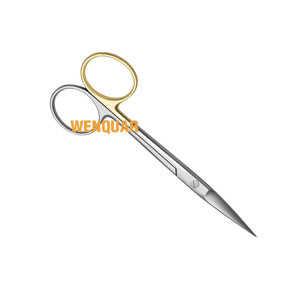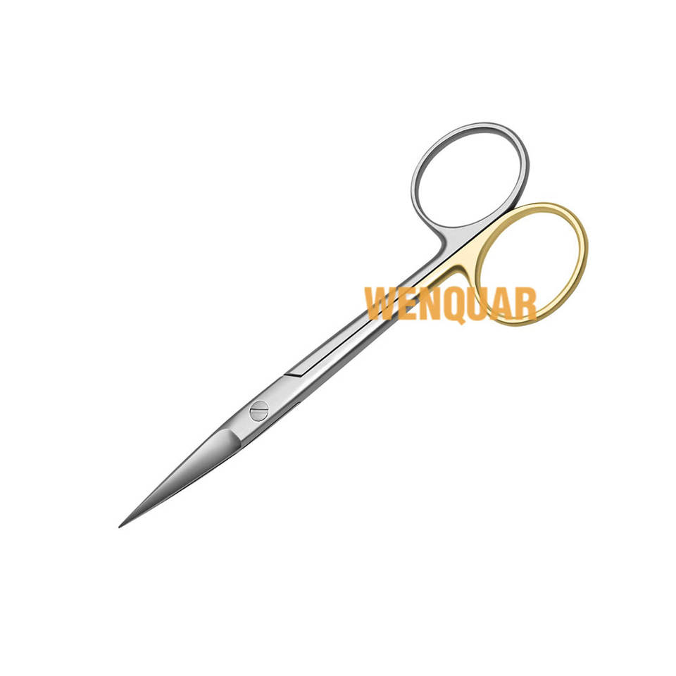 กรรไกรตัดไอริสฟันแบบตัดพิเศษ11.5ซม. อุปกรณ์ทำจากสเตนเลสสตีลใช้มือแหวนทอง1ด้านการแพทย์ wenquar