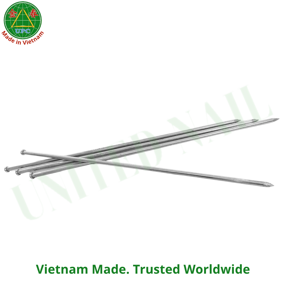 ตะปูเหล็กหัวแบนขนาด 11.6 นิ้ว ขัดเงา ด้ามเรียบ สำหรับงานก่อสร้างไม้จากเวียดนาม | ตะปูอเนกประสงค์